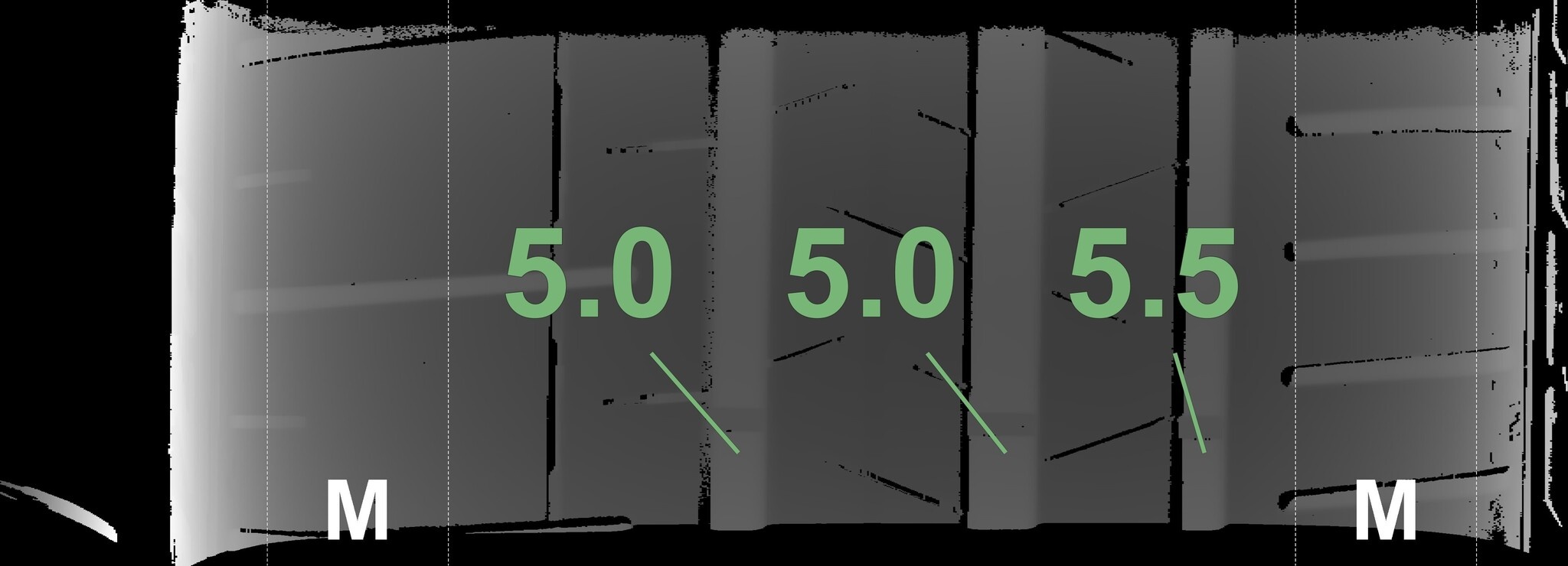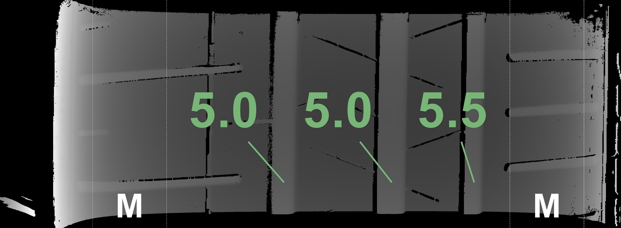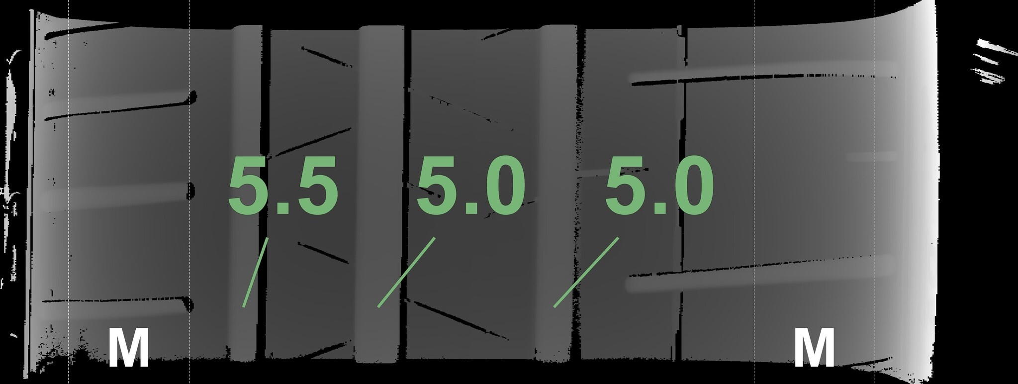 De gemeten profieldieptes en de details van de velgen zijn hierboven weergegeven.