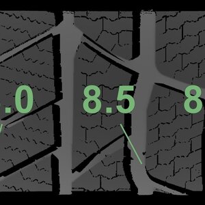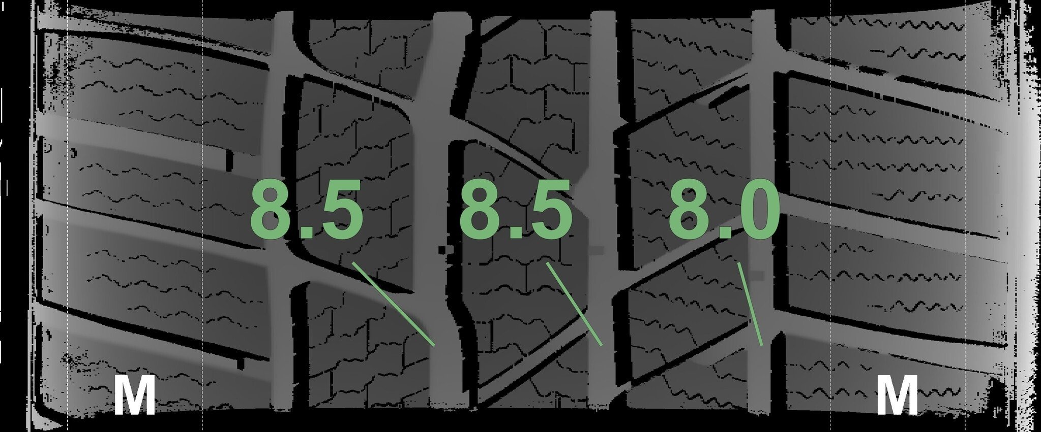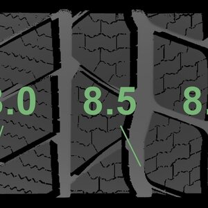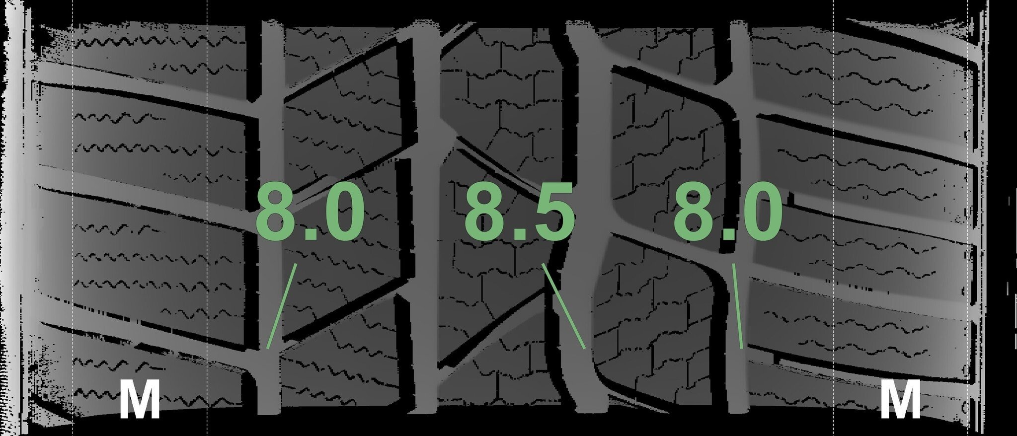 De gemeten profieldieptes en de details van de velgen zijn hierboven weergegeven.