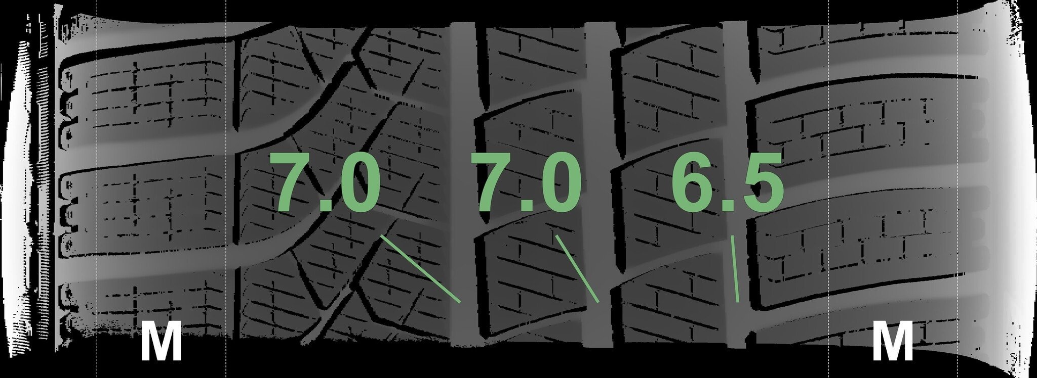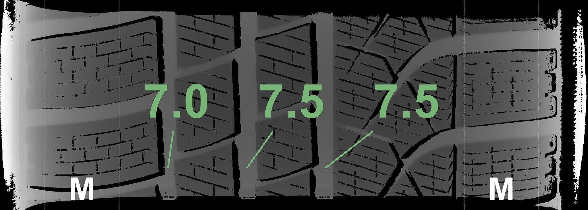 De gemeten profieldieptes en de details van de velgen zijn hierboven weergegeven.