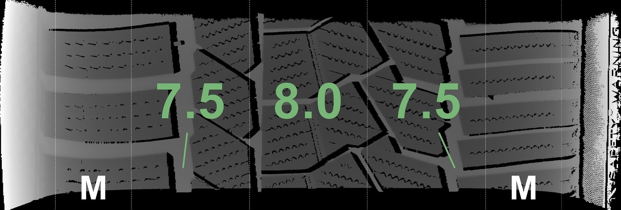 | Conditie | Profieldiepte | DOT | Links Achter | Gebruikt | 7.5 mm | 4224 |