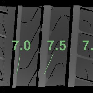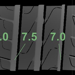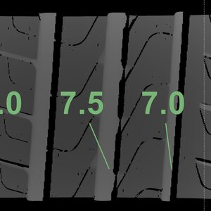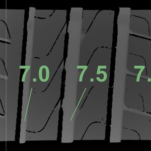 De gemeten profieldieptes en de details van de velgen zijn hierboven weergegeven.