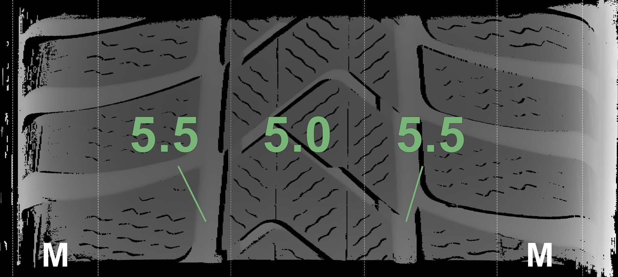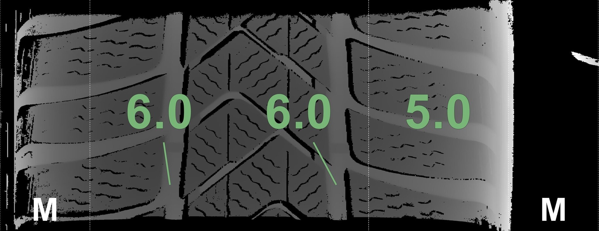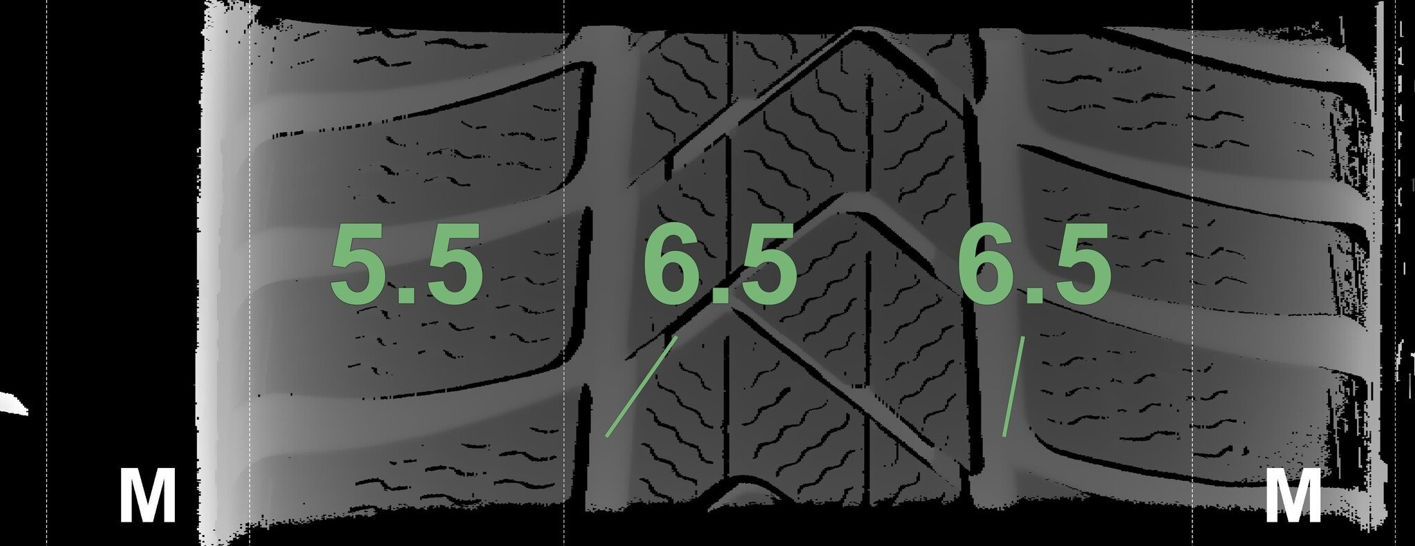 De gemeten profieldieptes en de details van de velgen zijn hierboven weergegeven.