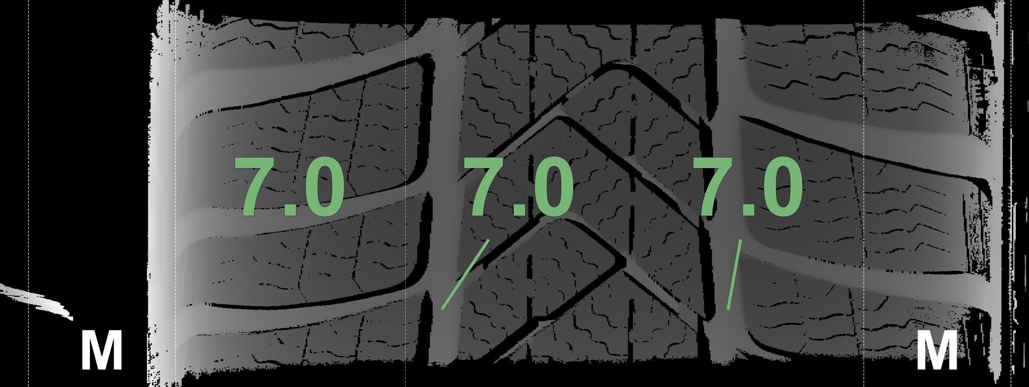 | Conditie | Profieldiepte | DOT | Links Achter | Gebruikt | 7.0 mm | 3621 |