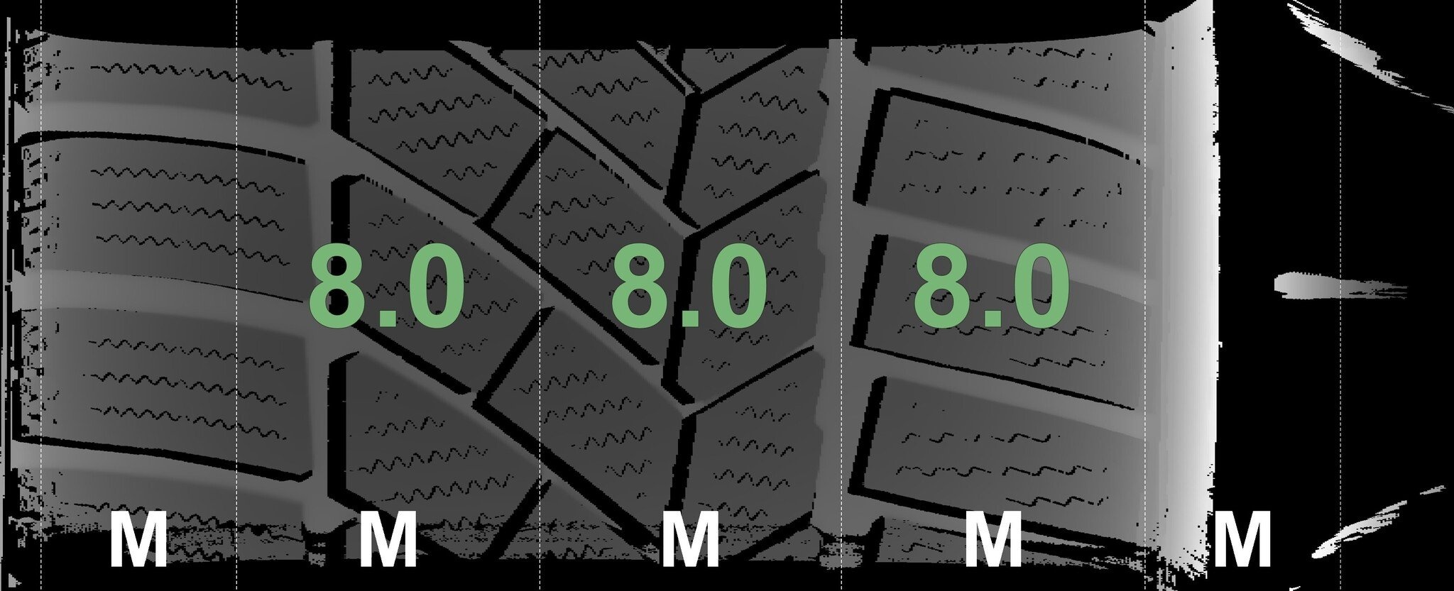 | Conditie | Profieldiepte | DOT | Rechts Achter | Demo nopjes nog zichtbaar | 8.0 mm | 4924 |
