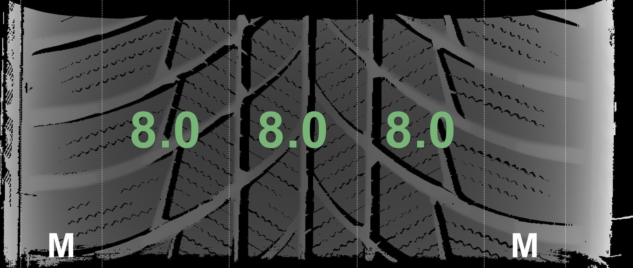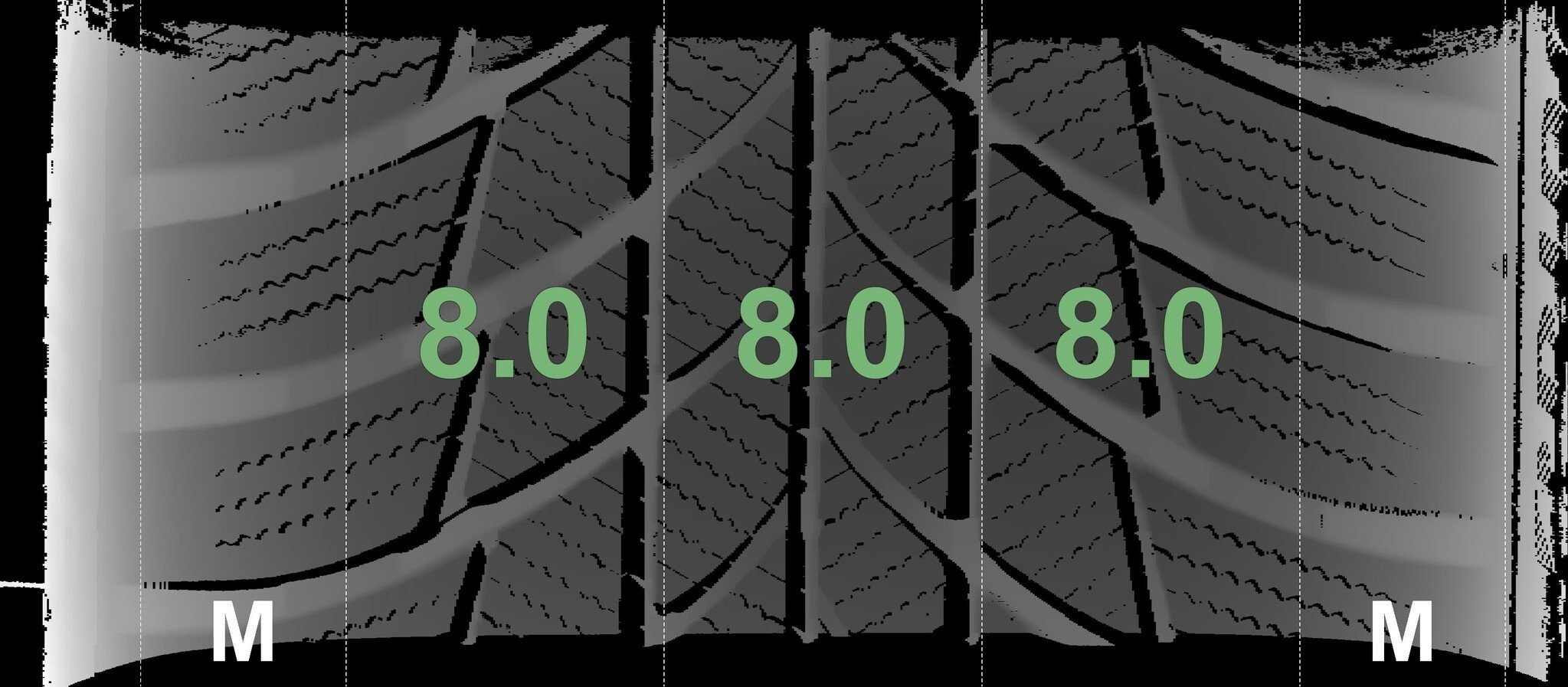 De gemeten profieldieptes en de details van de velgen zijn hierboven weergegeven.