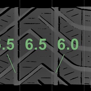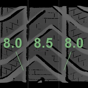 De gemeten profieldieptes en de details van de velgen zijn hierboven weergegeven.