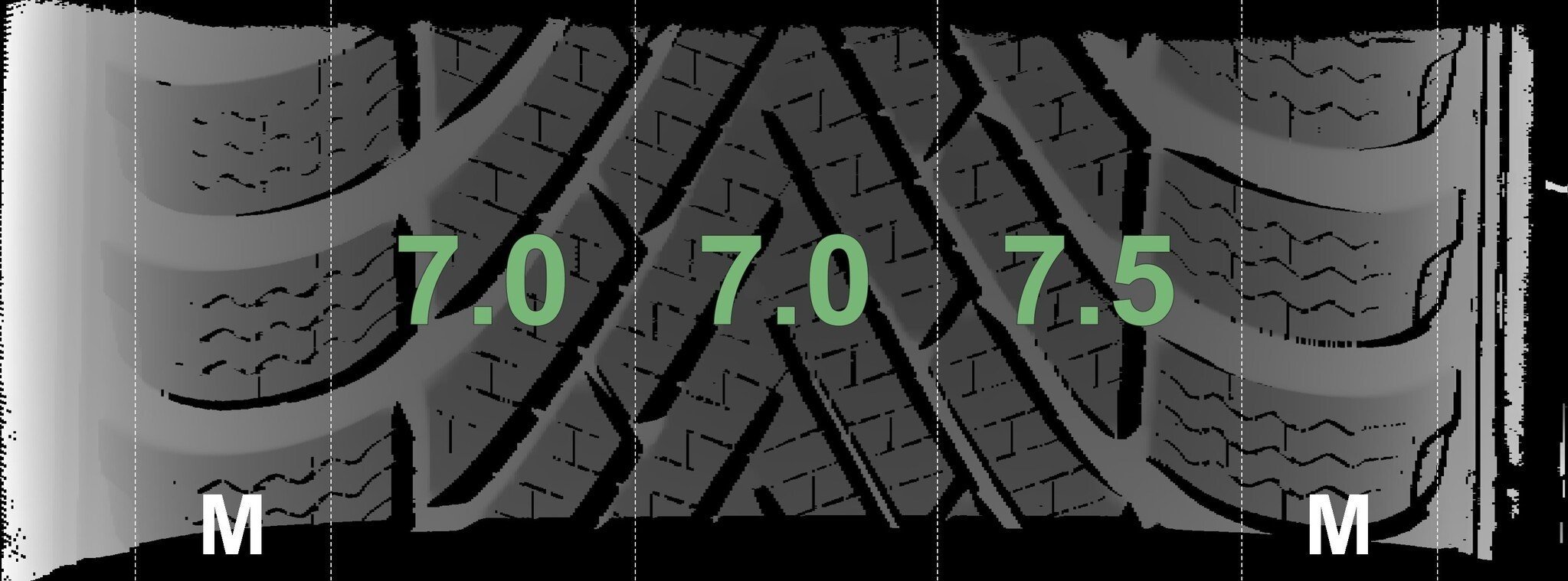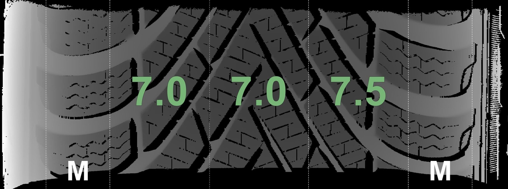 De gemeten profieldieptes en de details van de velgen zijn hierboven weergegeven.