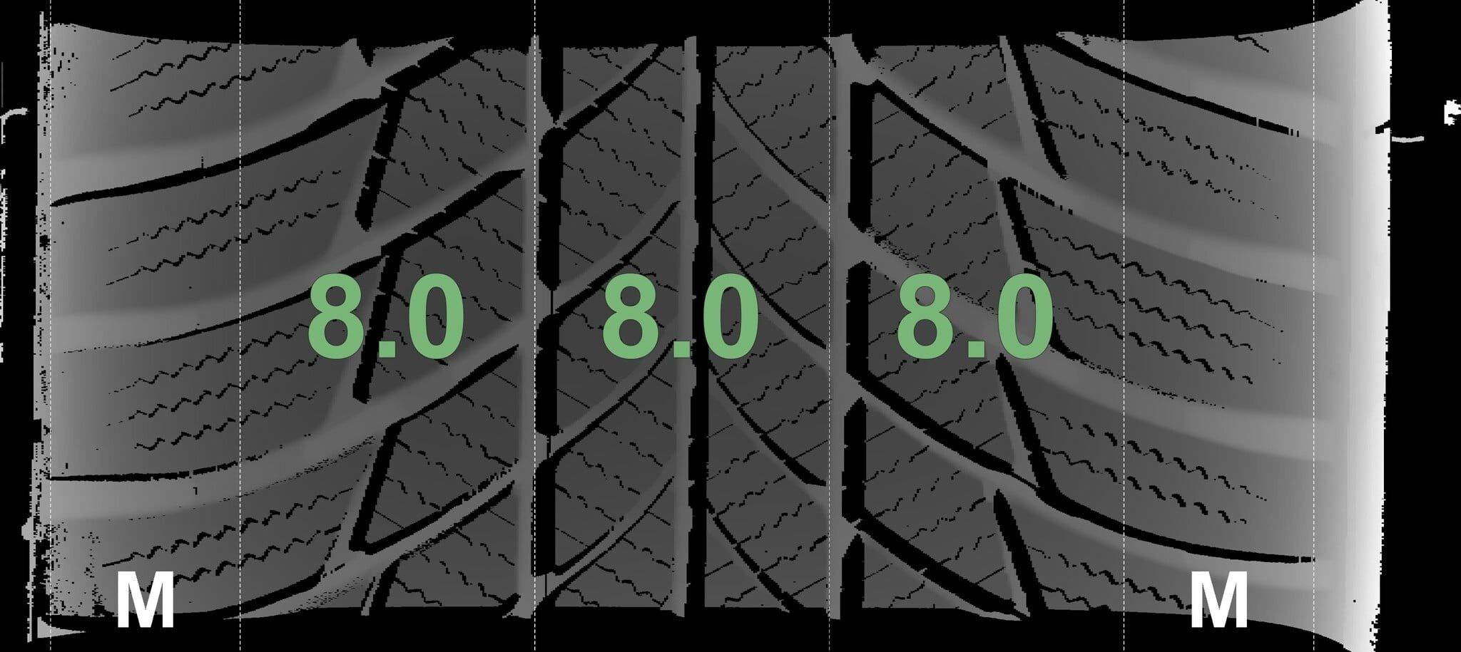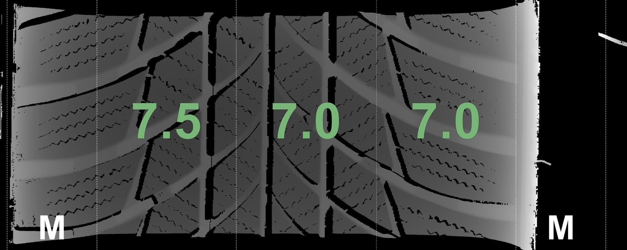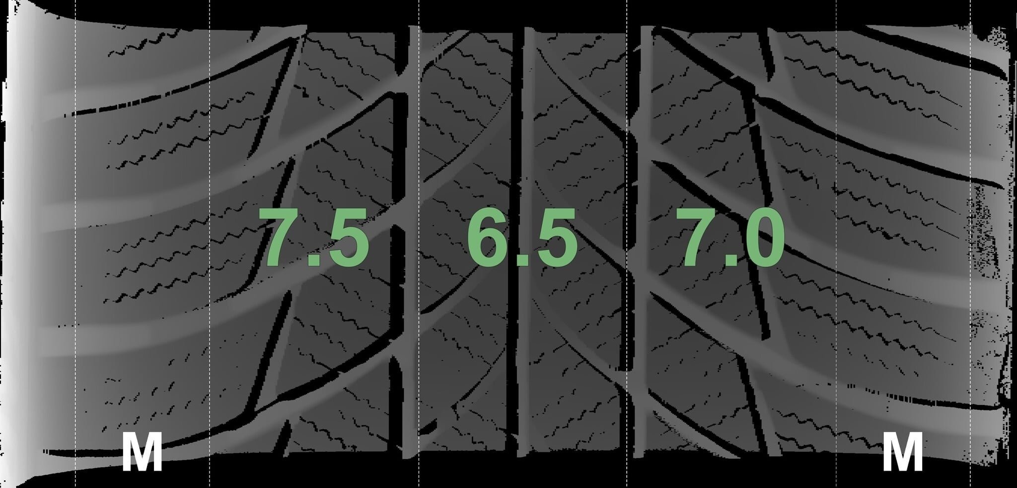 De gemeten profieldieptes en de details van de velgen zijn hierboven weergegeven.
