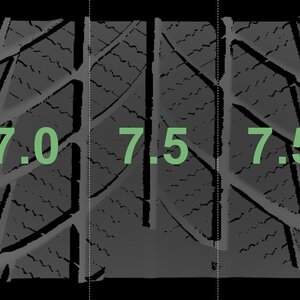 De gemeten profieldieptes en de details van de velgen zijn hierboven weergegeven.