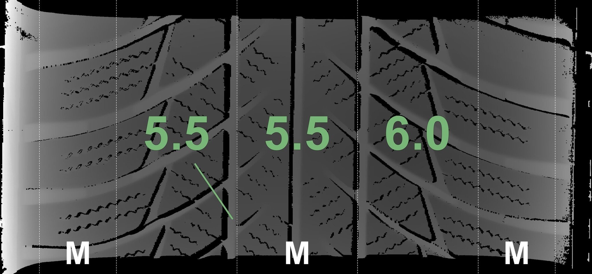 | Conditie | Profieldiepte | DOT | Rechts Voor | Gebruikt | 5.5 mm | 2919 |