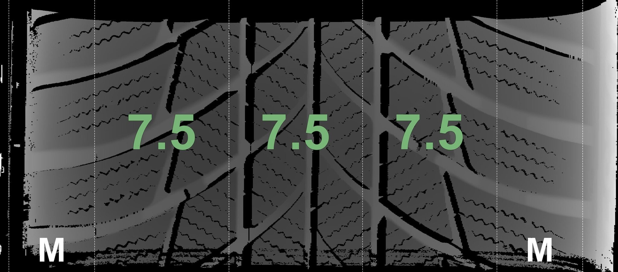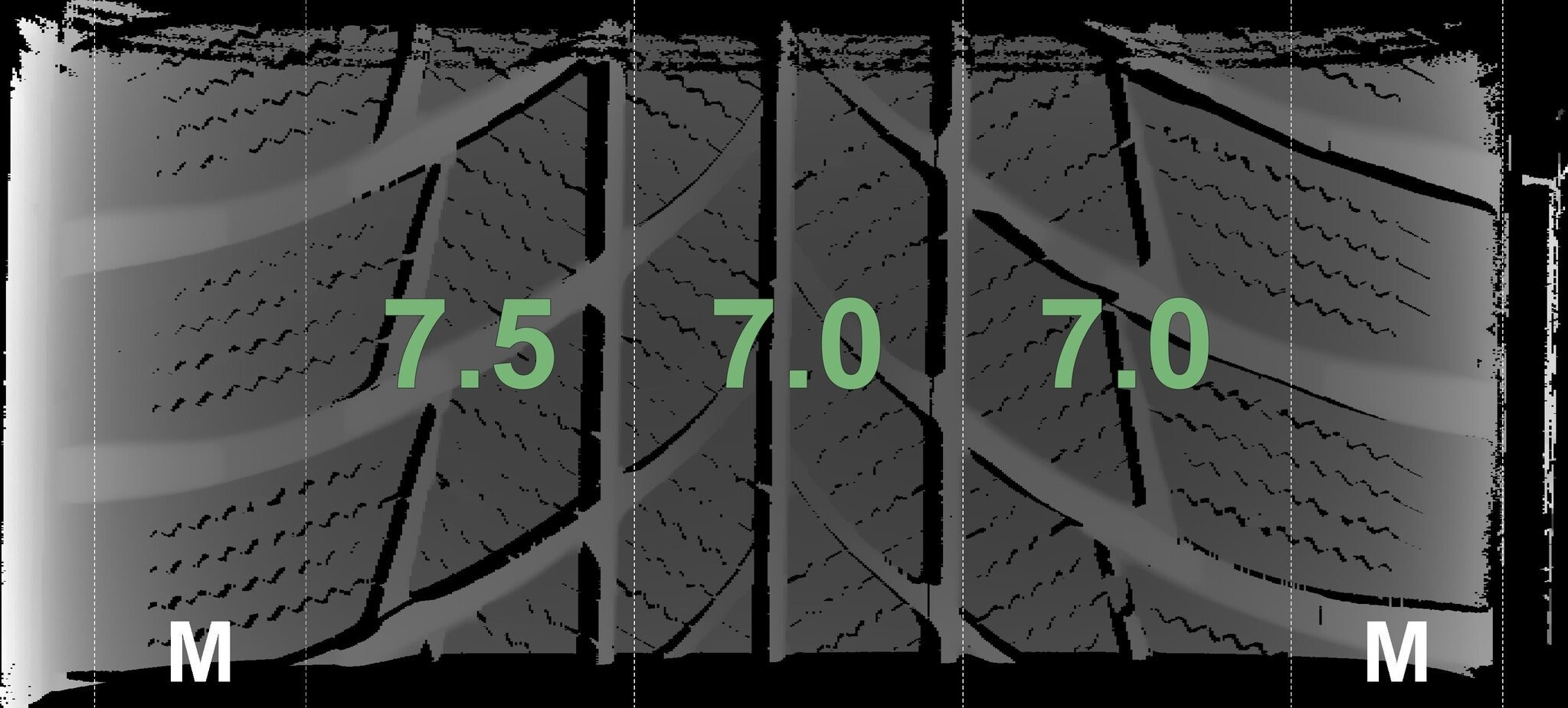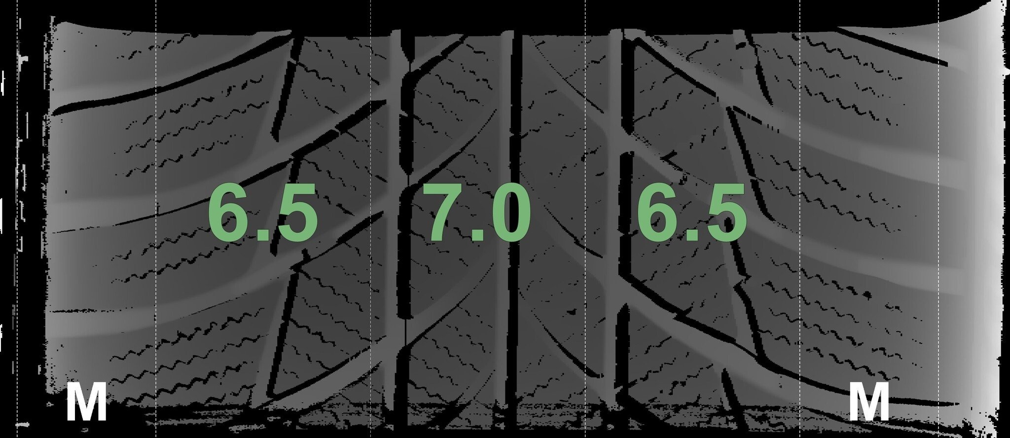 De gemeten profieldieptes en de details van de velgen zijn hierboven weergegeven.