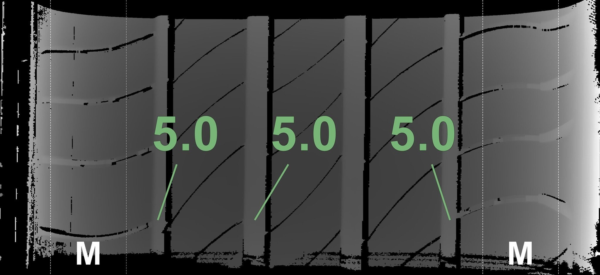 De gemeten profieldieptes en de details van de velgen zijn hierboven weergegeven.