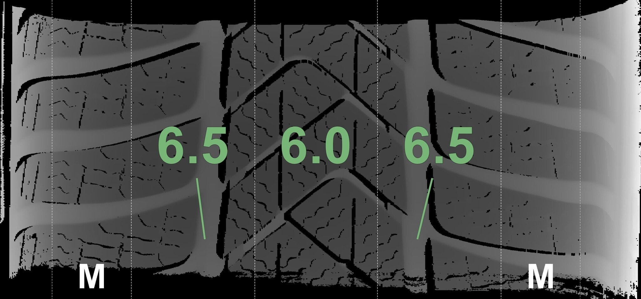 De gemeten profieldieptes en de details van de velgen zijn hierboven weergegeven.