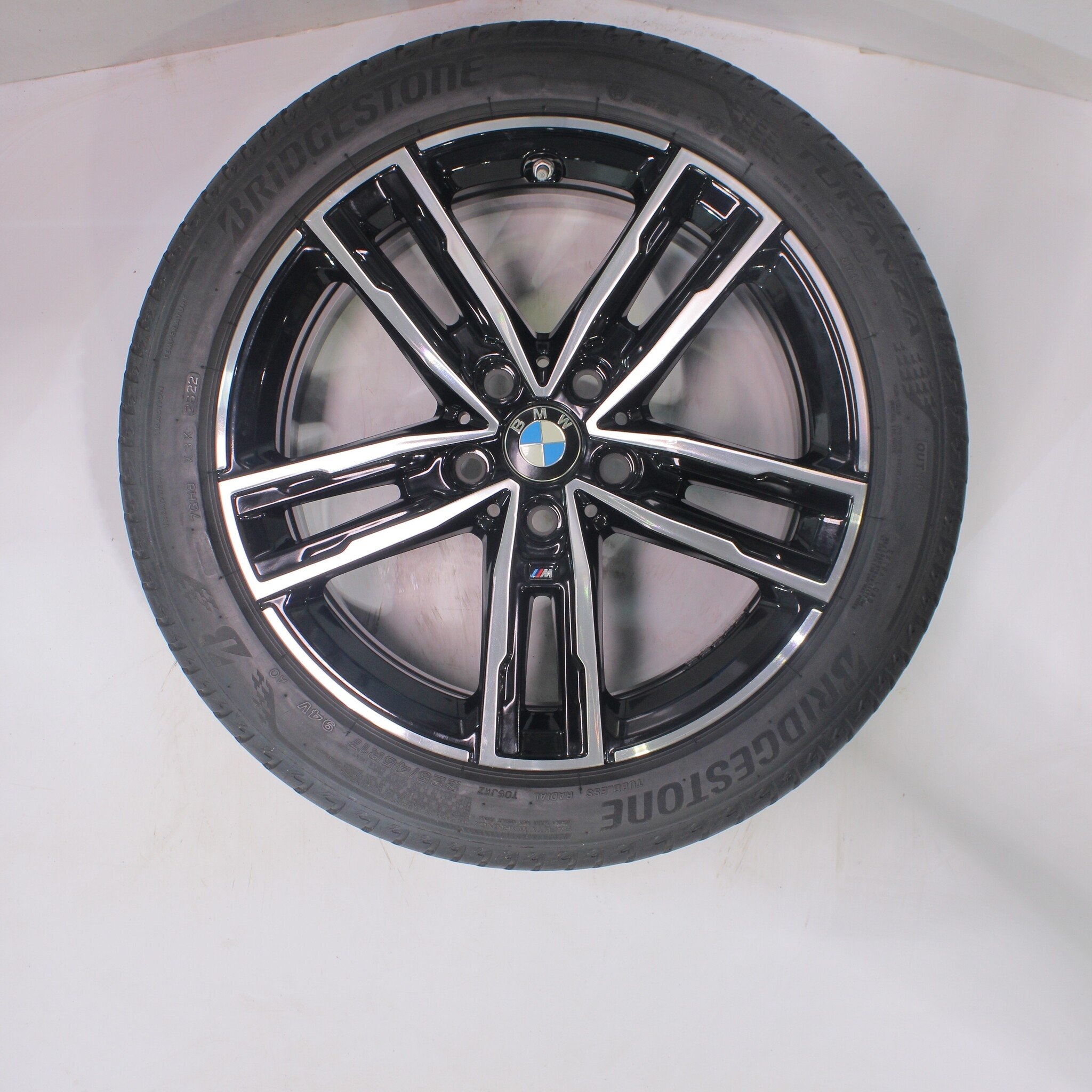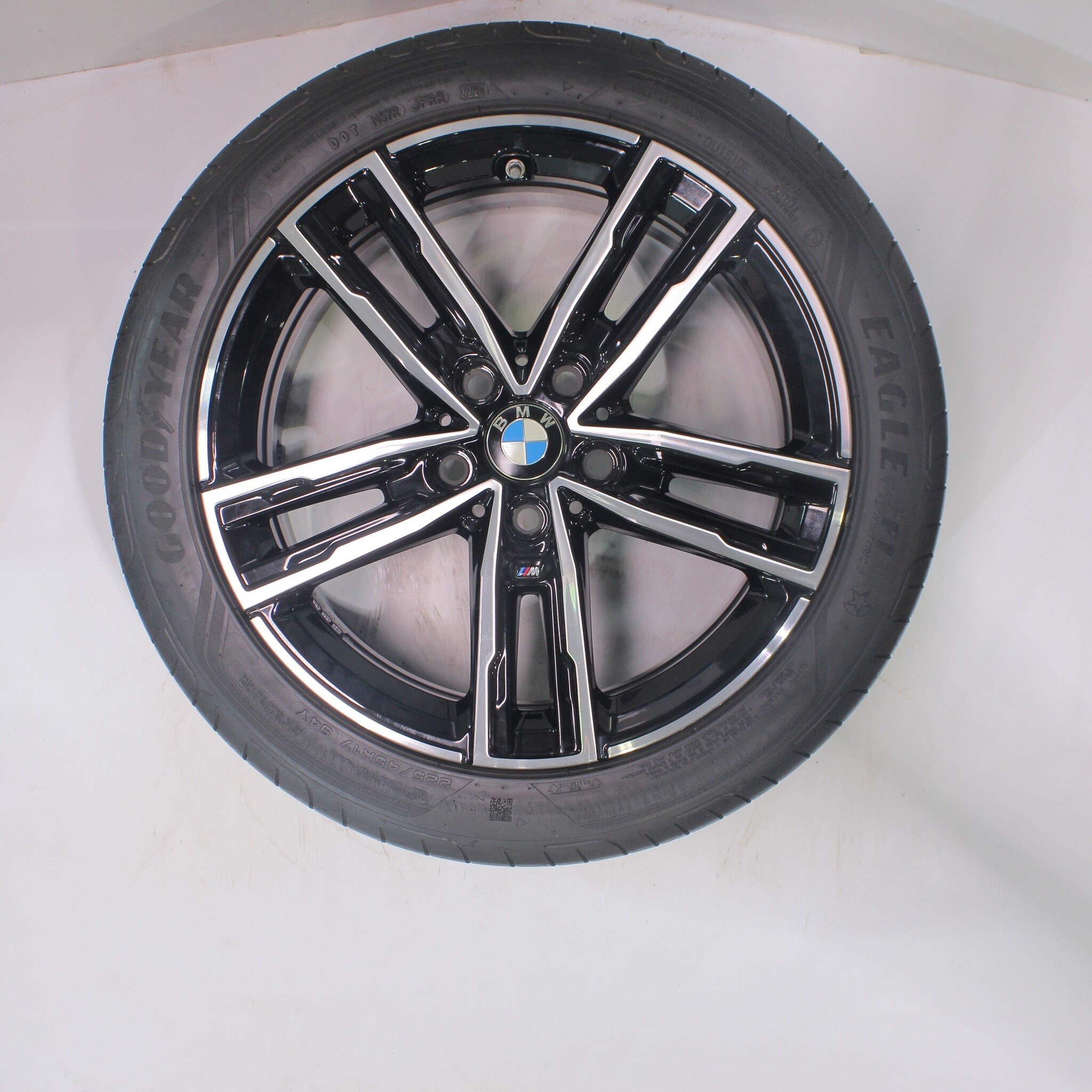 Originele wielset van BMW, styling 550M, 17 inch velgen met Goodyear Eagle F1 Asymmetric 3 Zomerbanden. Deze velgen zijn originele velgen van het merk BMW en geschikt voor: BMW 1 2 serie F40 F44 2 serie Gran Coupe.