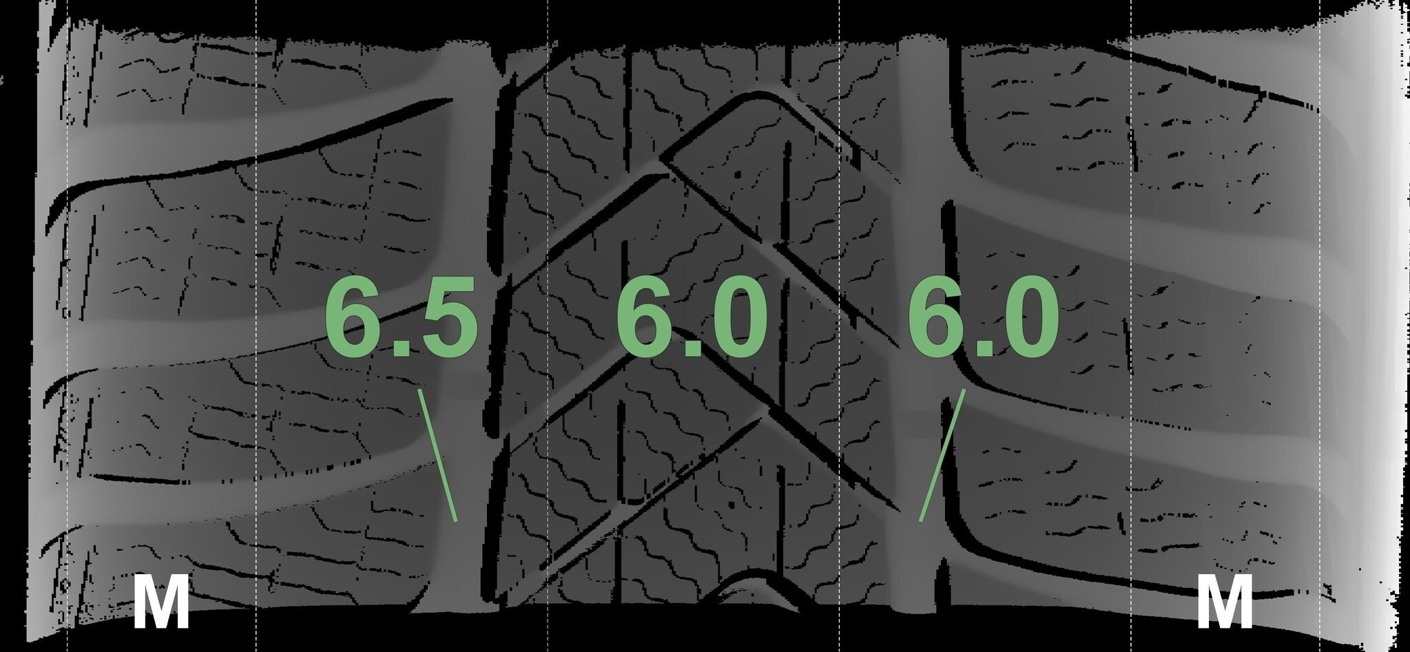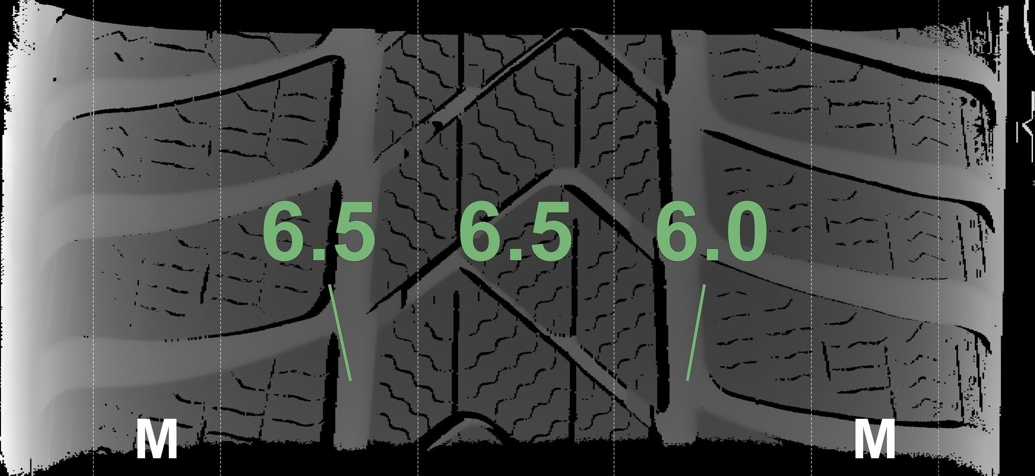 De gemeten profieldieptes en de details van de velgen zijn hierboven weergegeven.