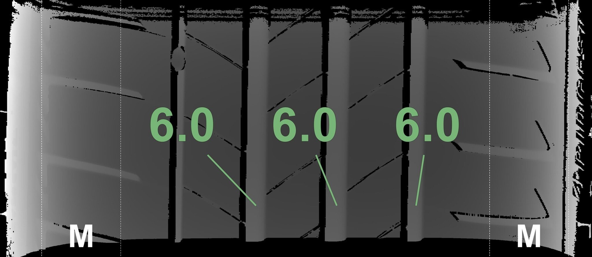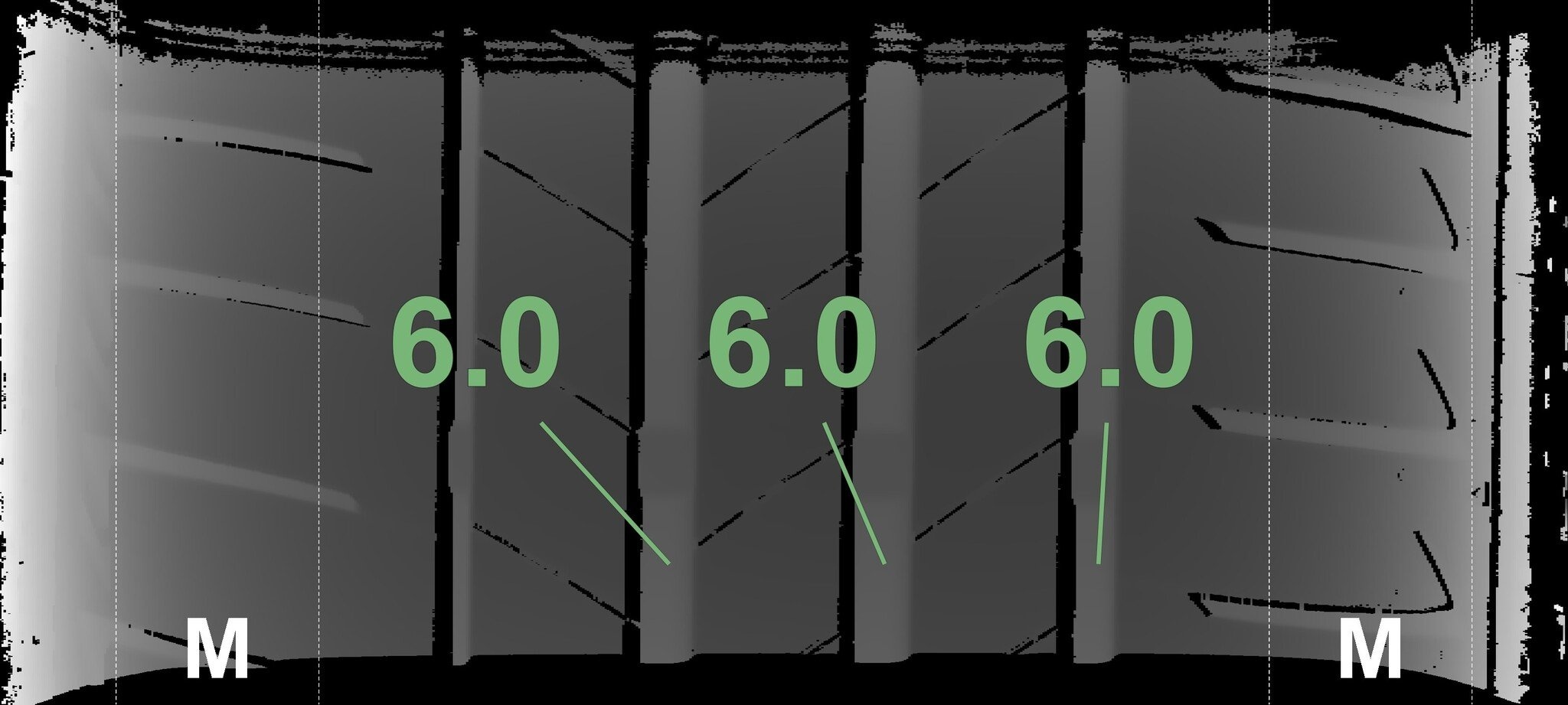 De gemeten profieldieptes en de details van de velgen zijn hierboven weergegeven.