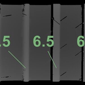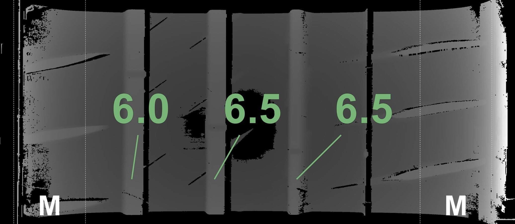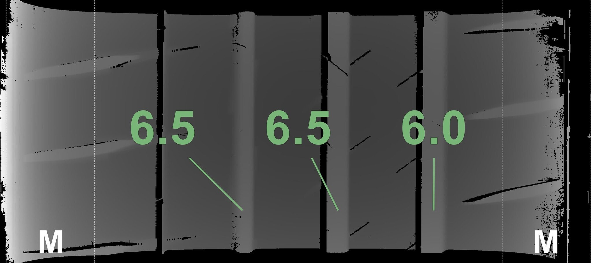 De gemeten profieldieptes en de details van de velgen zijn hierboven weergegeven.