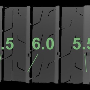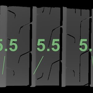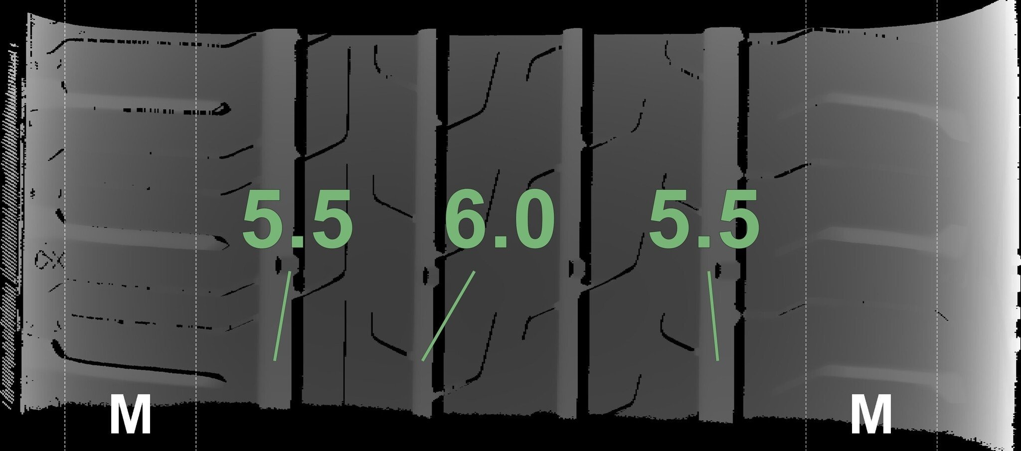 De gemeten profieldieptes en de details van de velgen zijn hierboven weergegeven.