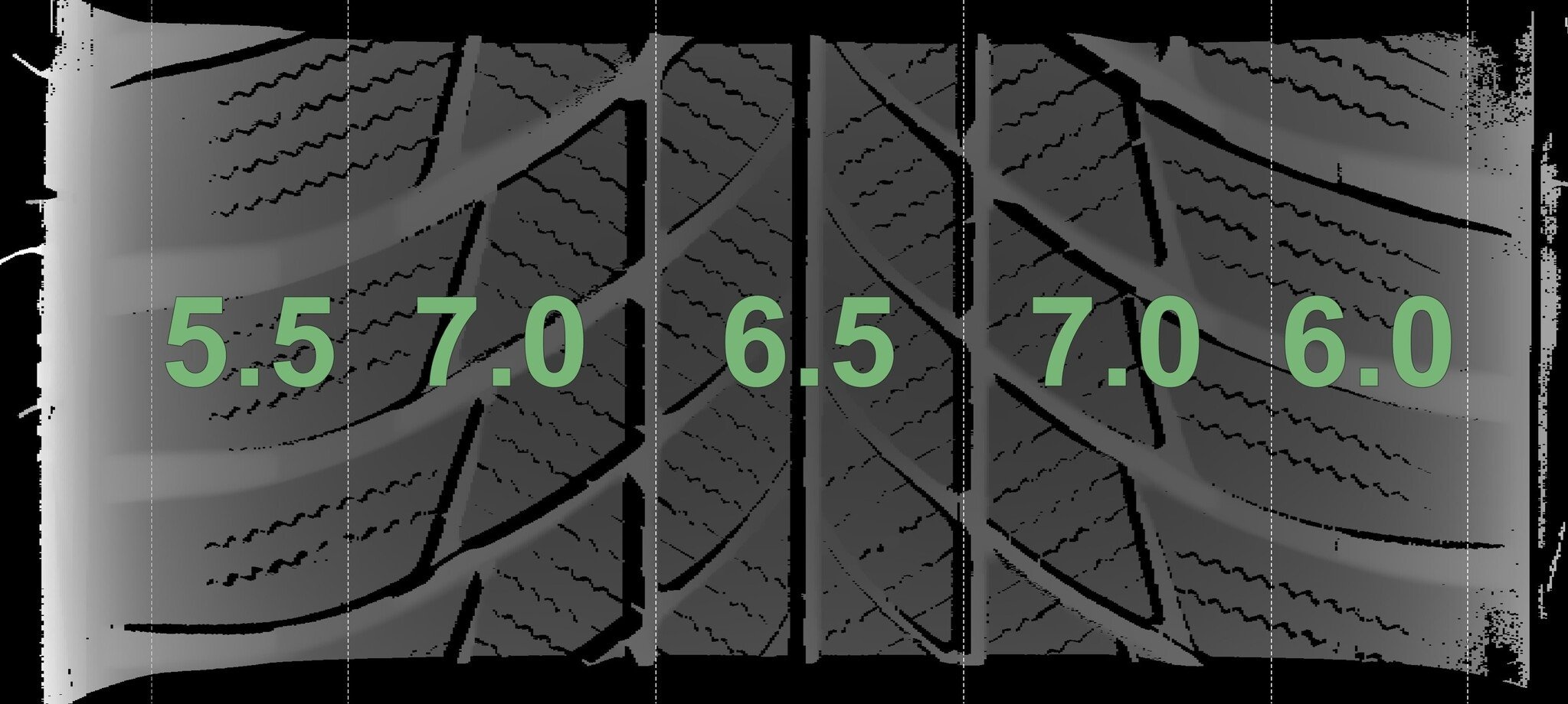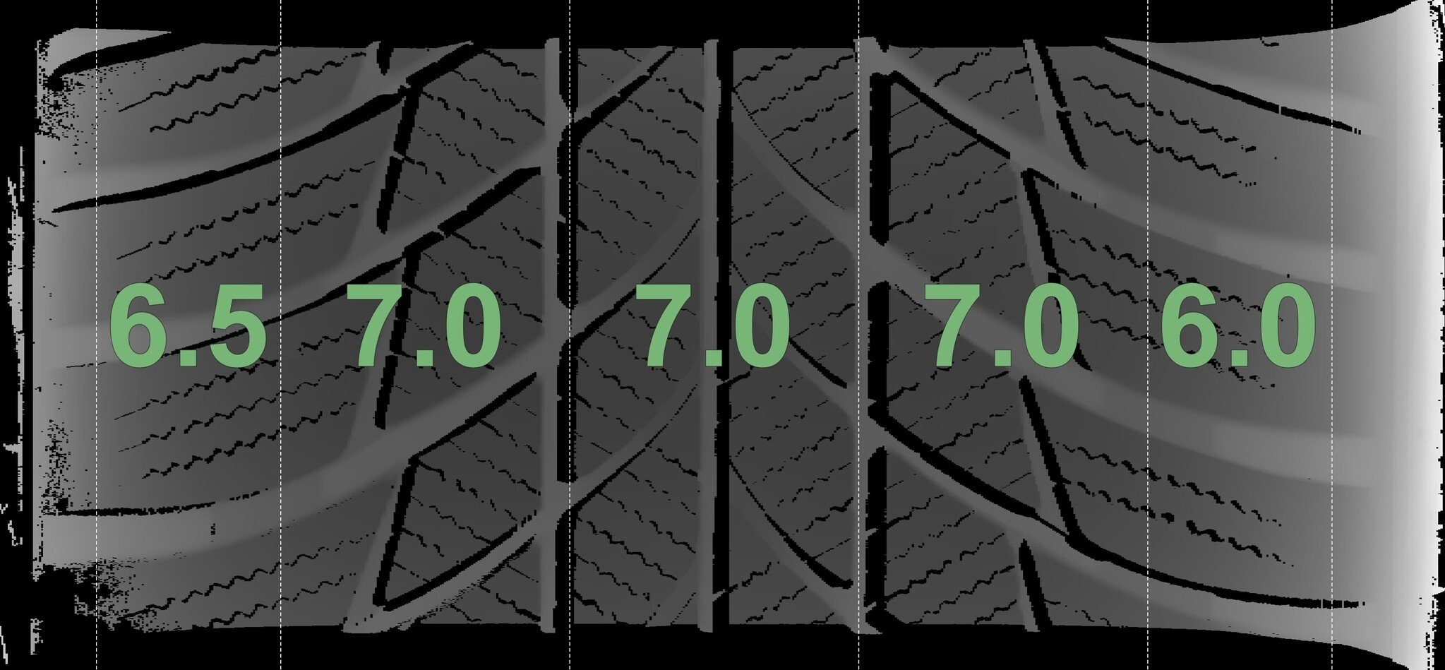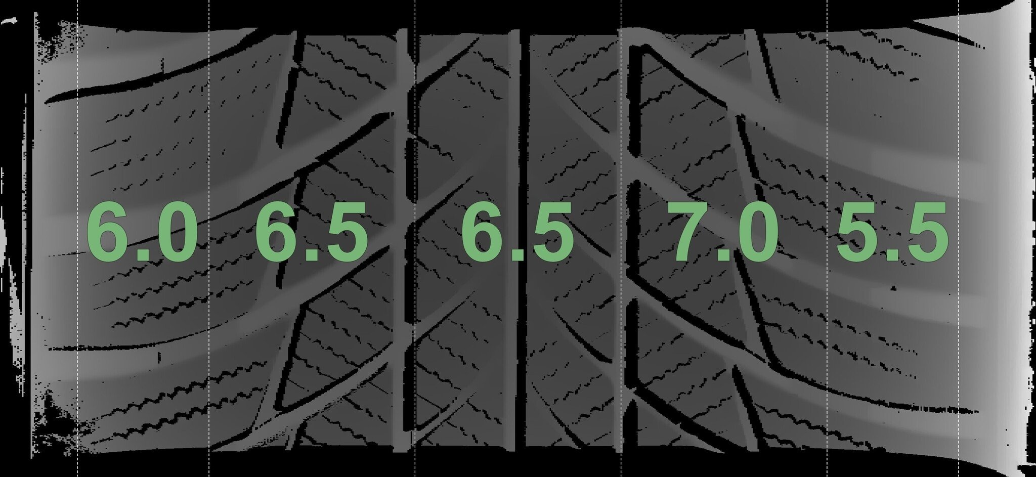 De gemeten profieldieptes en de details van de velgen zijn hierboven weergegeven.