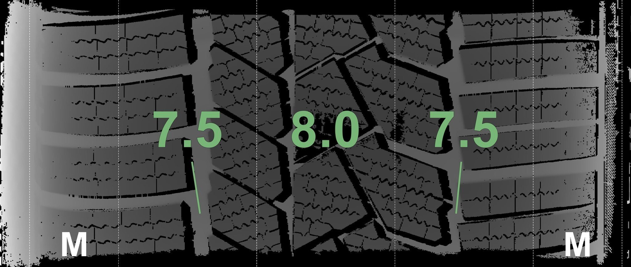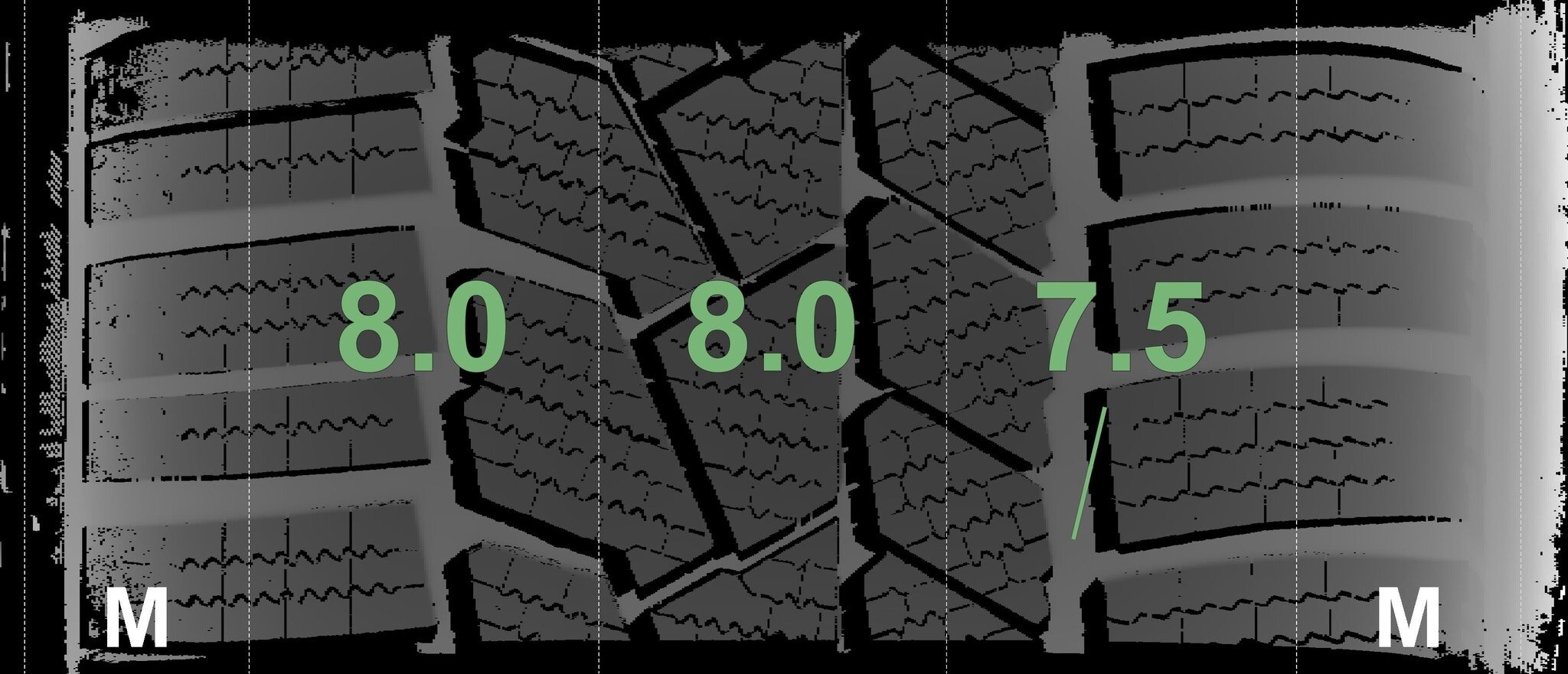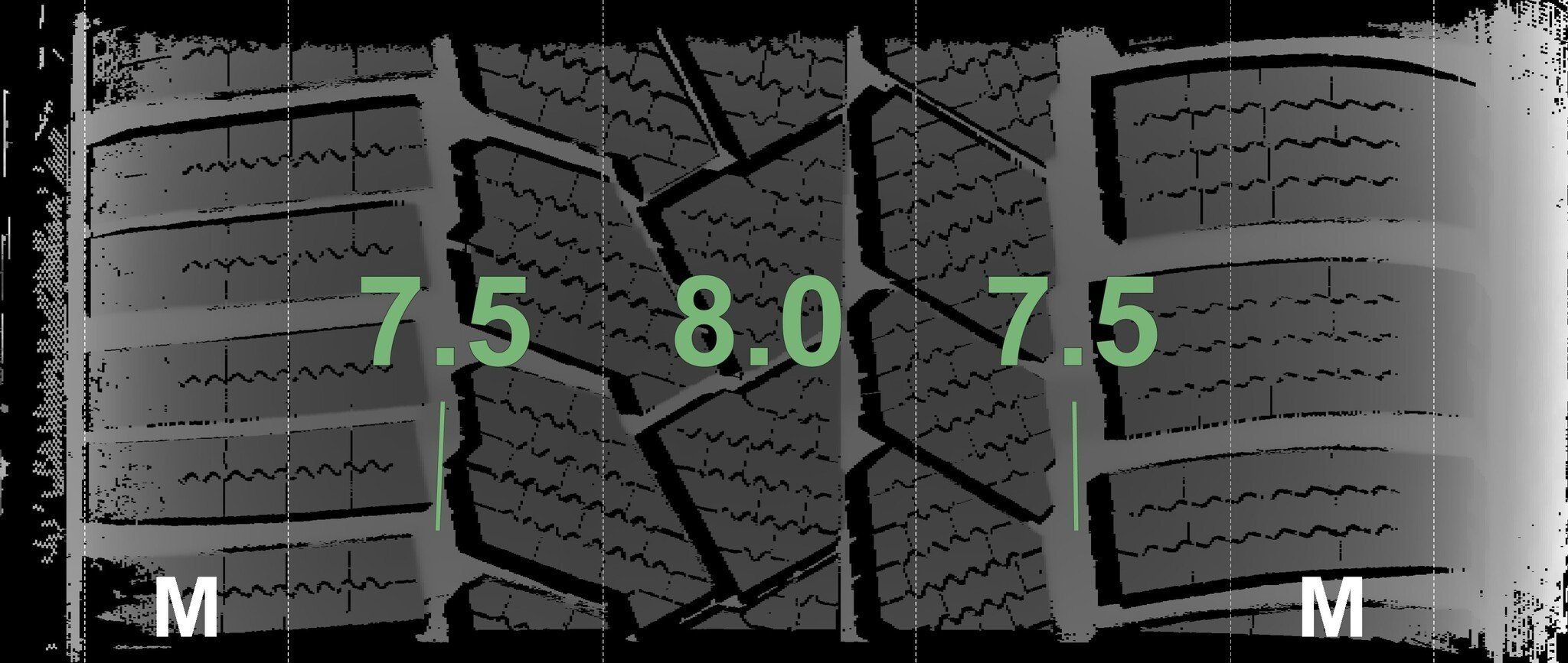 De gemeten profieldieptes en de details van de velgen zijn hierboven weergegeven.
