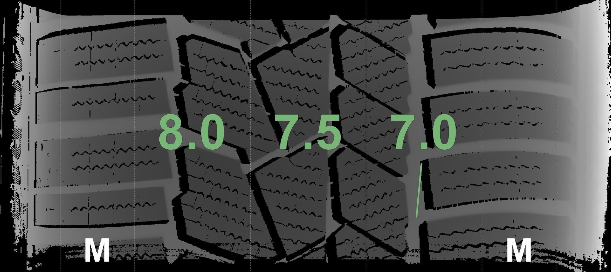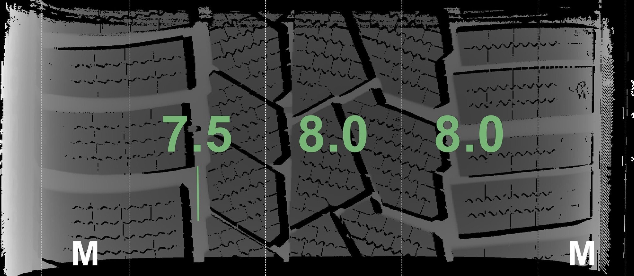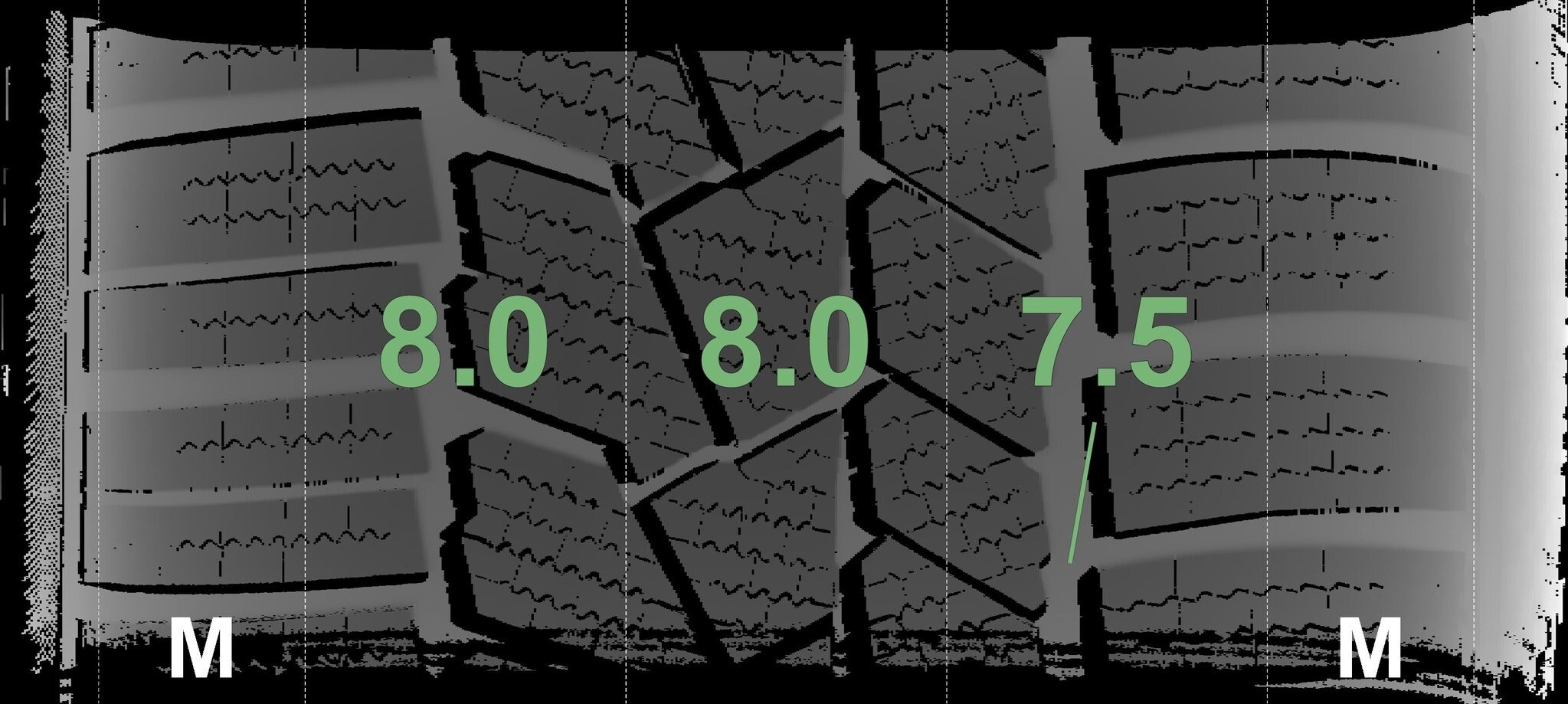 | Conditie | Profieldiepte | DOT | Links Achter | Demo nopjes nog zichtbaar | 7.8 mm | 4220 |