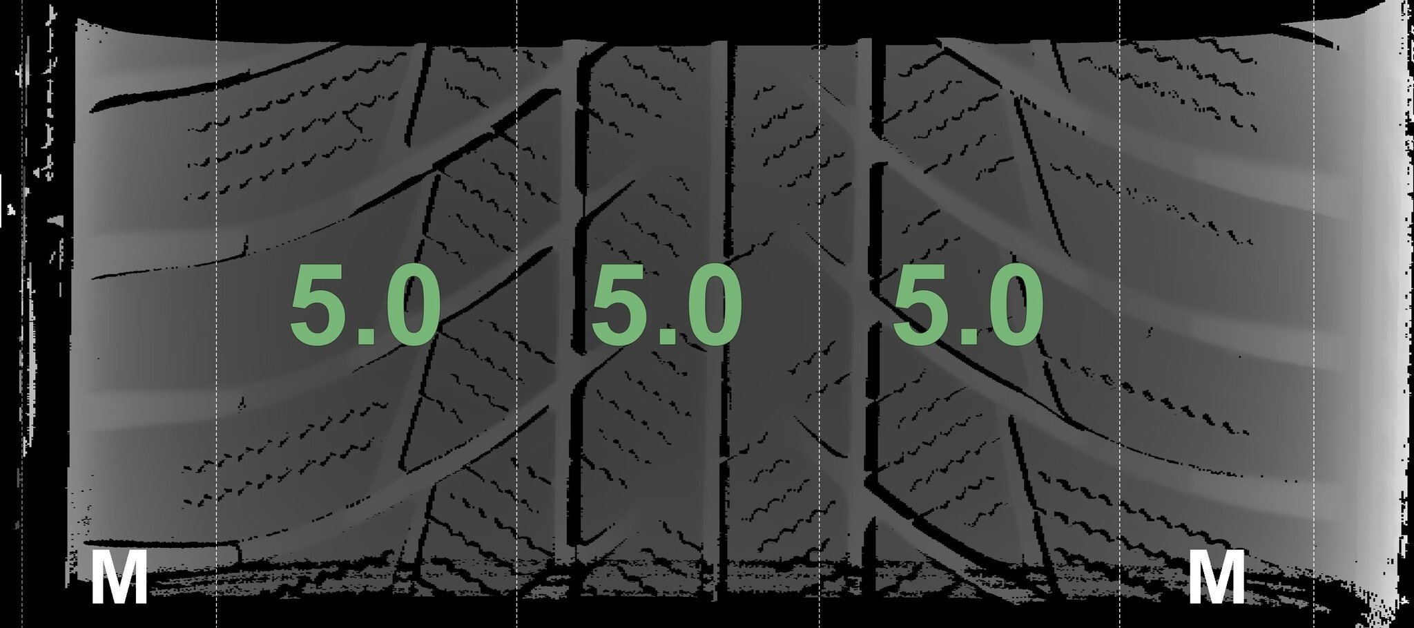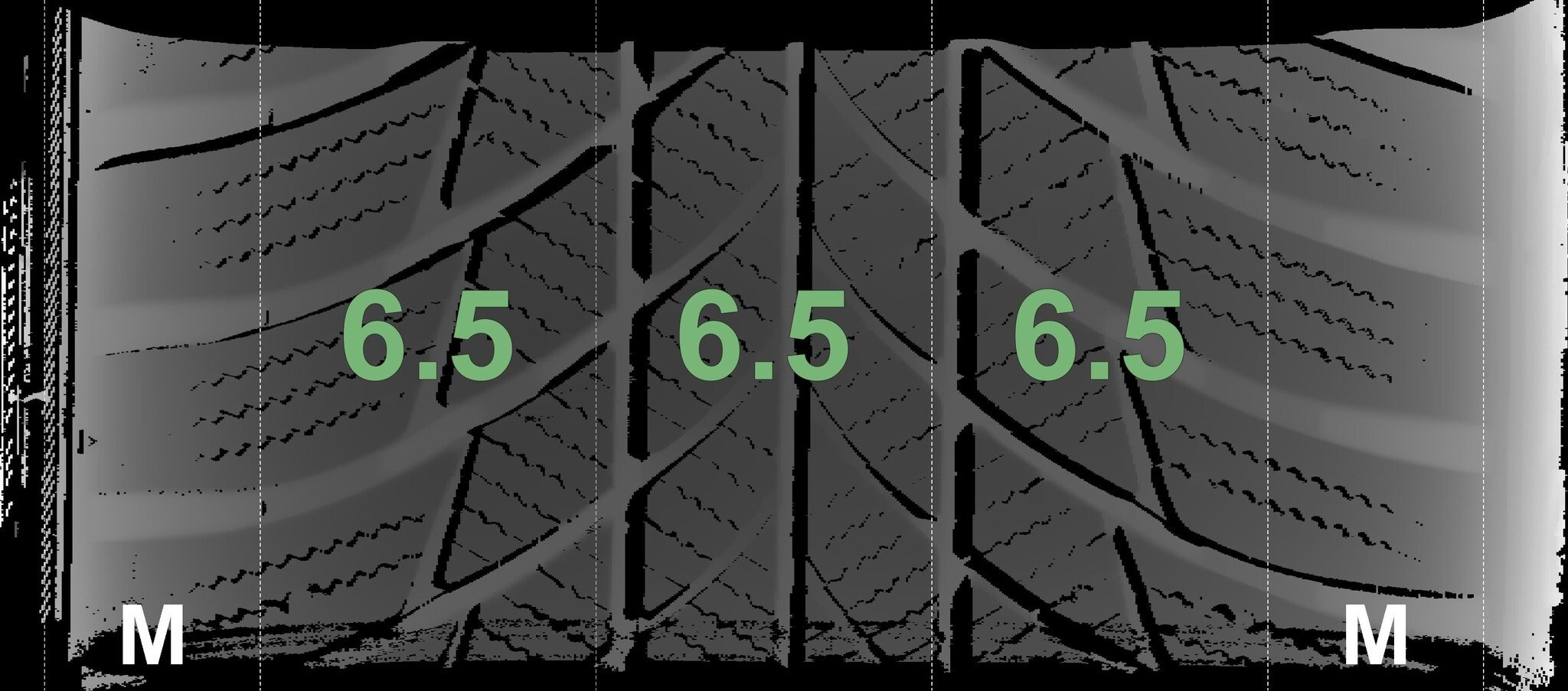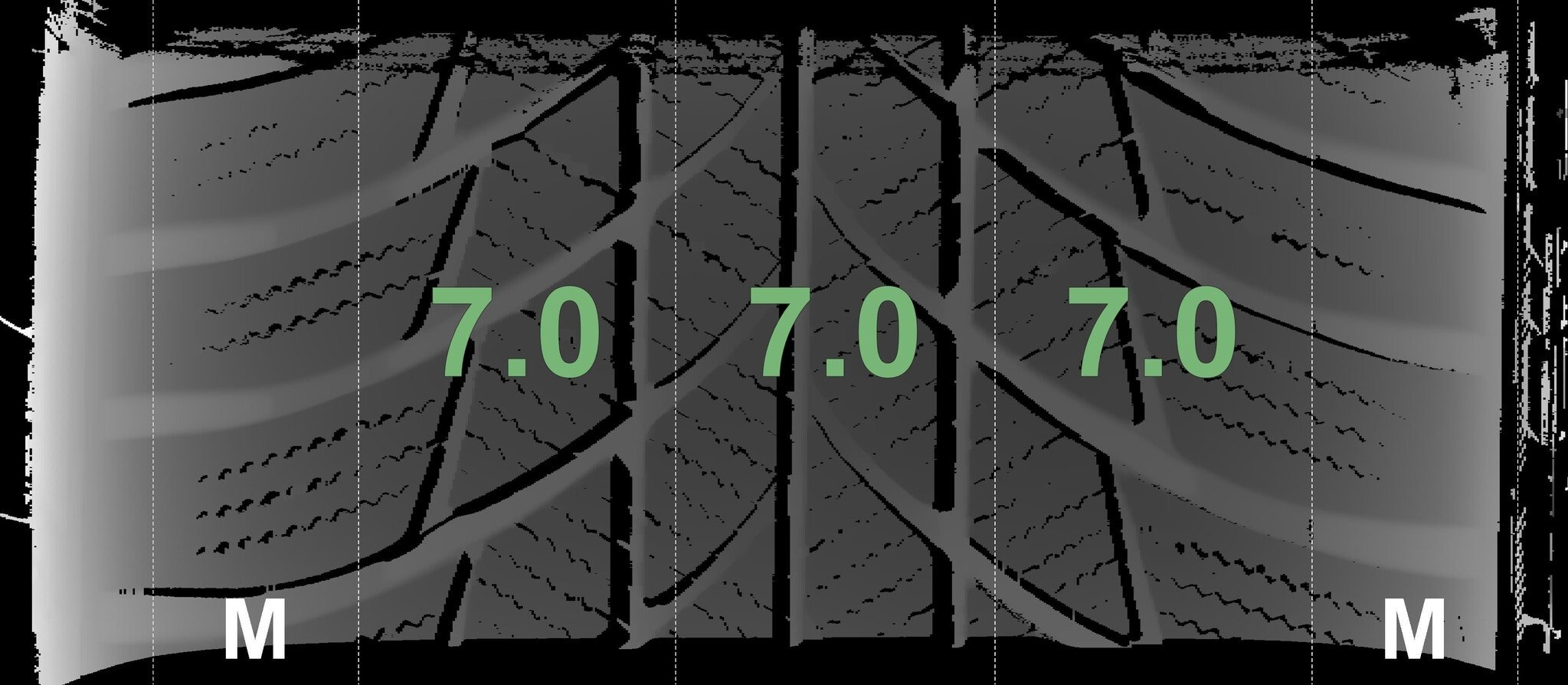 De gemeten profieldieptes en de details van de velgen zijn hierboven weergegeven.