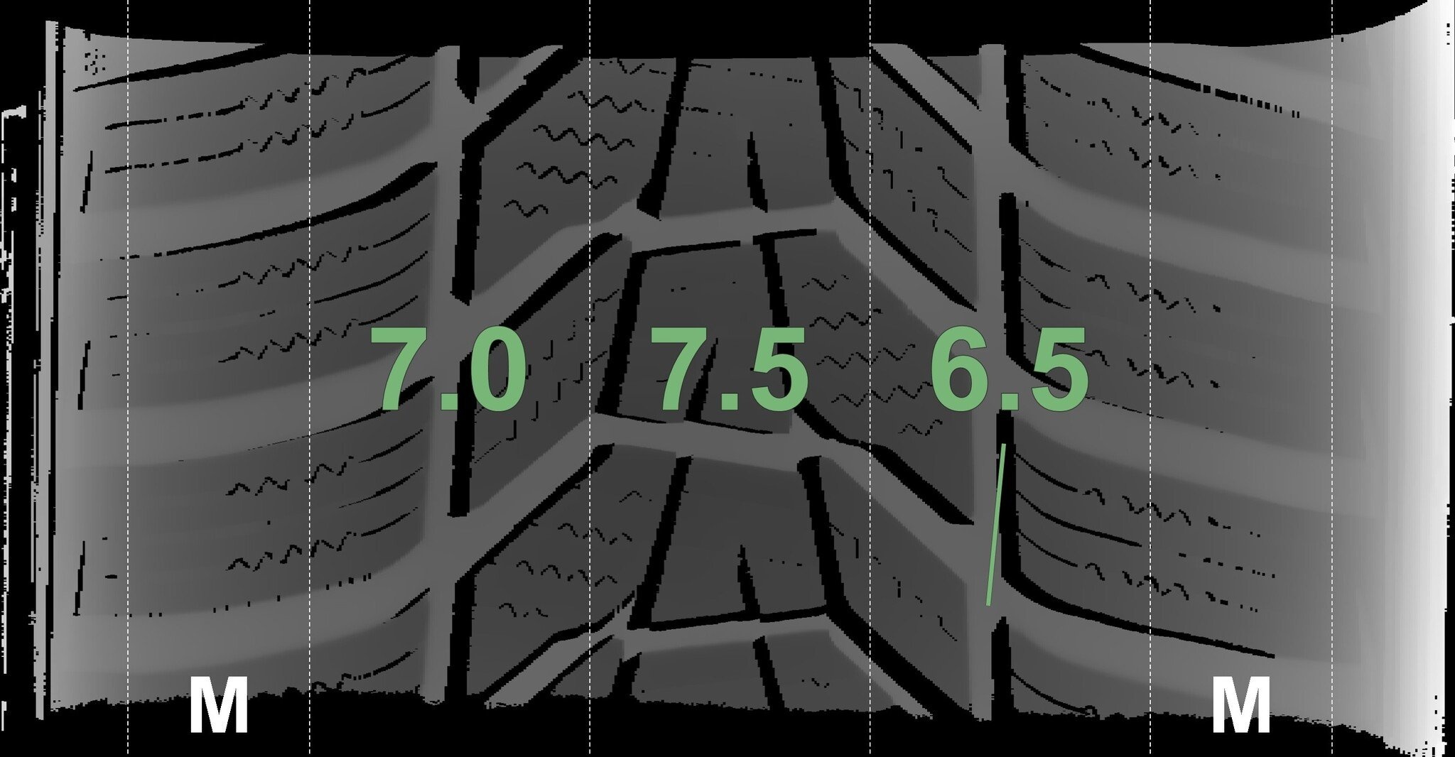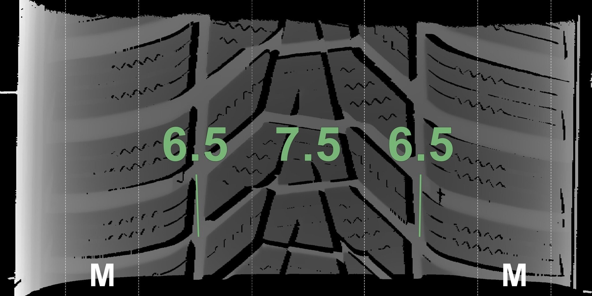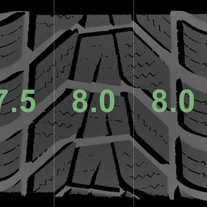 De gemeten profieldieptes en de details van de velgen zijn hierboven weergegeven.