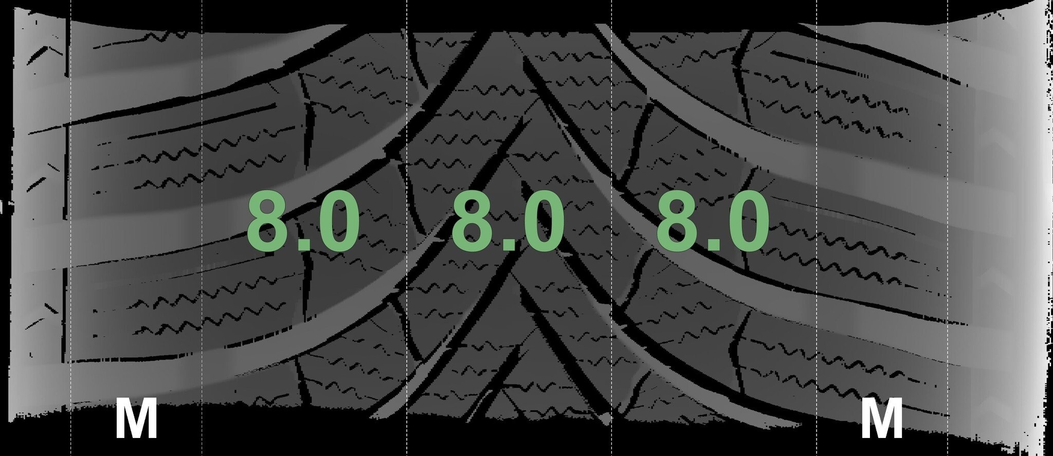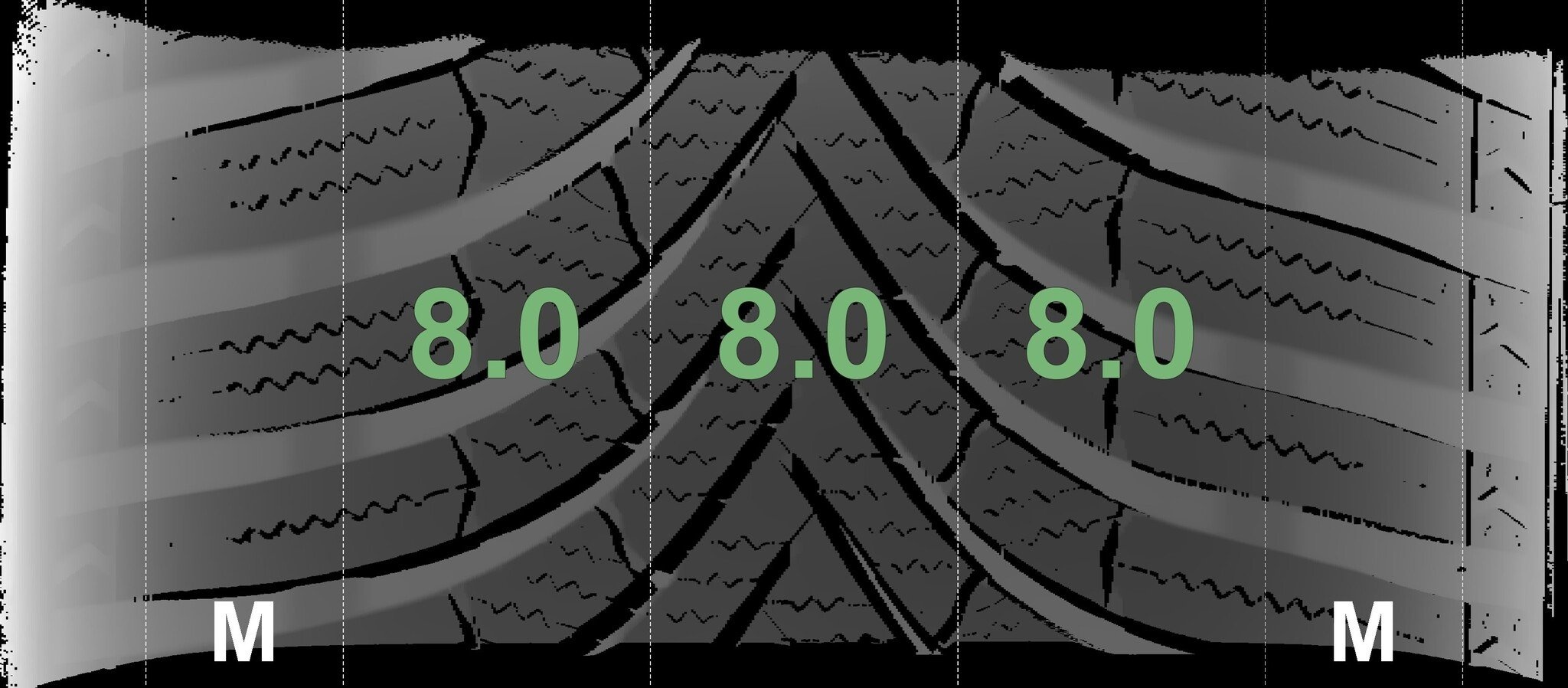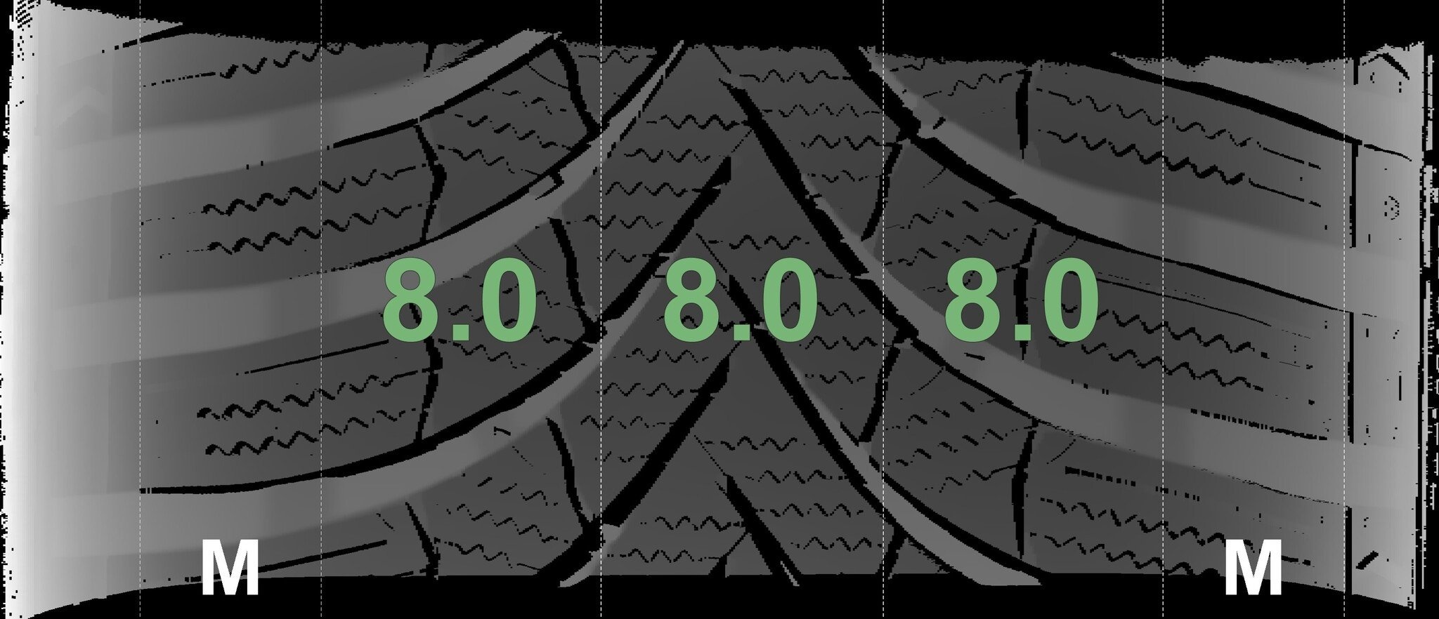 De gemeten profieldieptes en de details van de velgen zijn hierboven weergegeven.