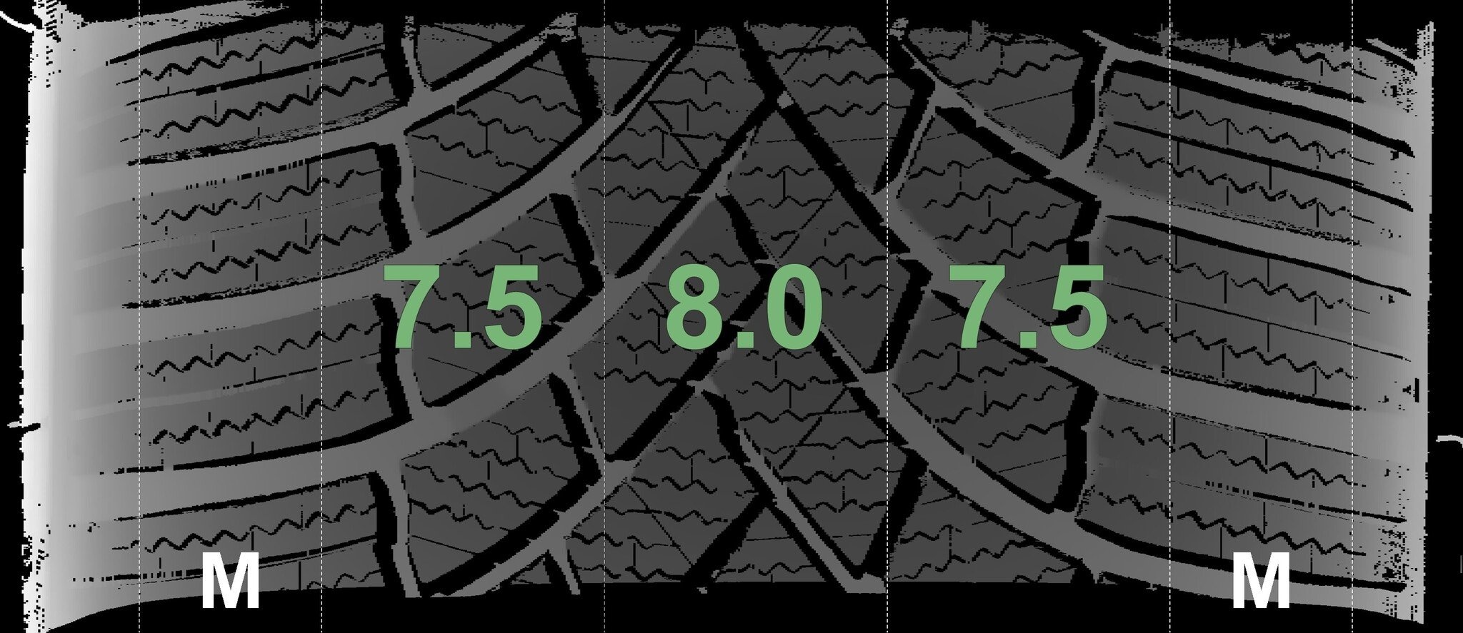 | Conditie | Profieldiepte | DOT | Rechts Voor | Nieuw | 7.5 mm | 4125 |