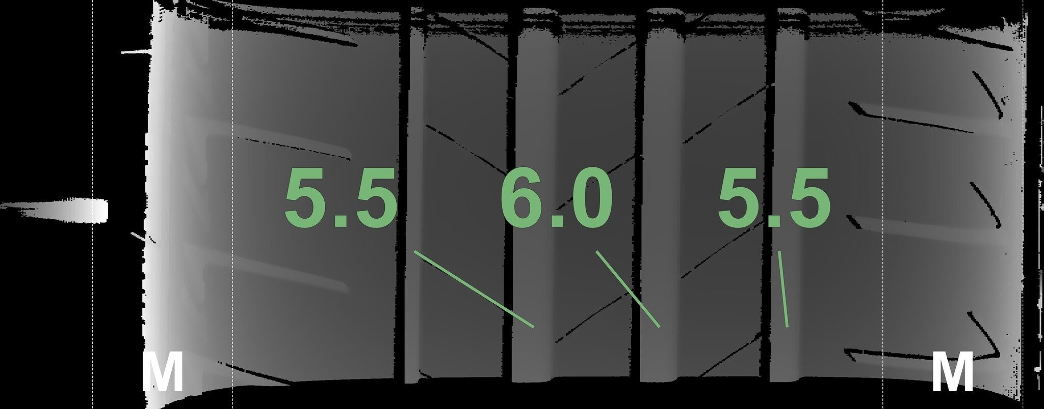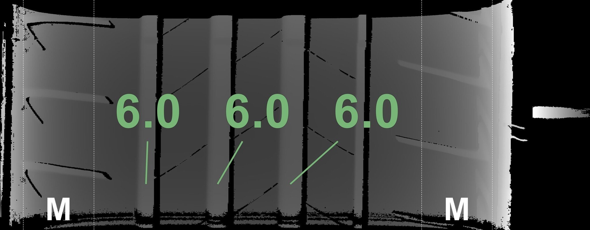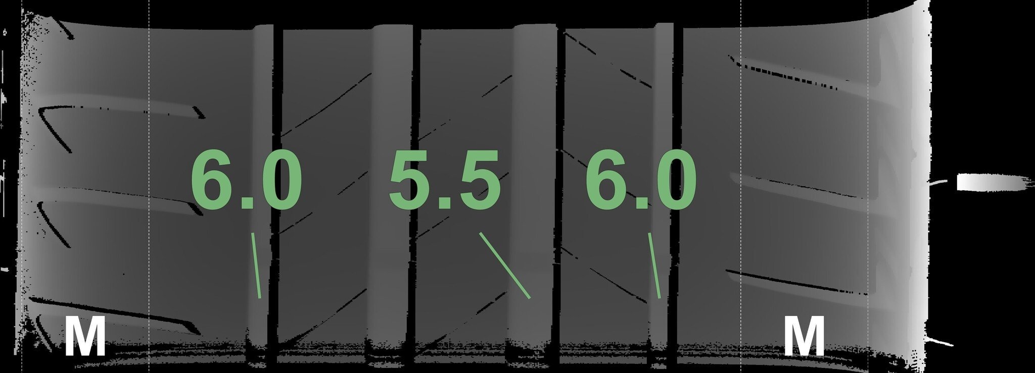 De gemeten profieldieptes en de details van de velgen zijn hierboven weergegeven.