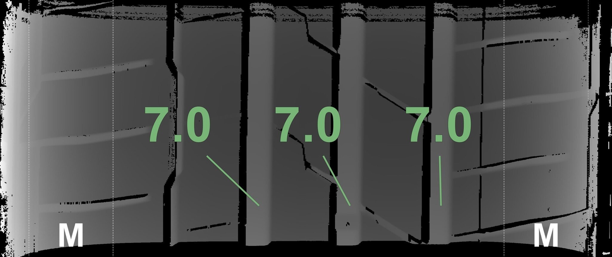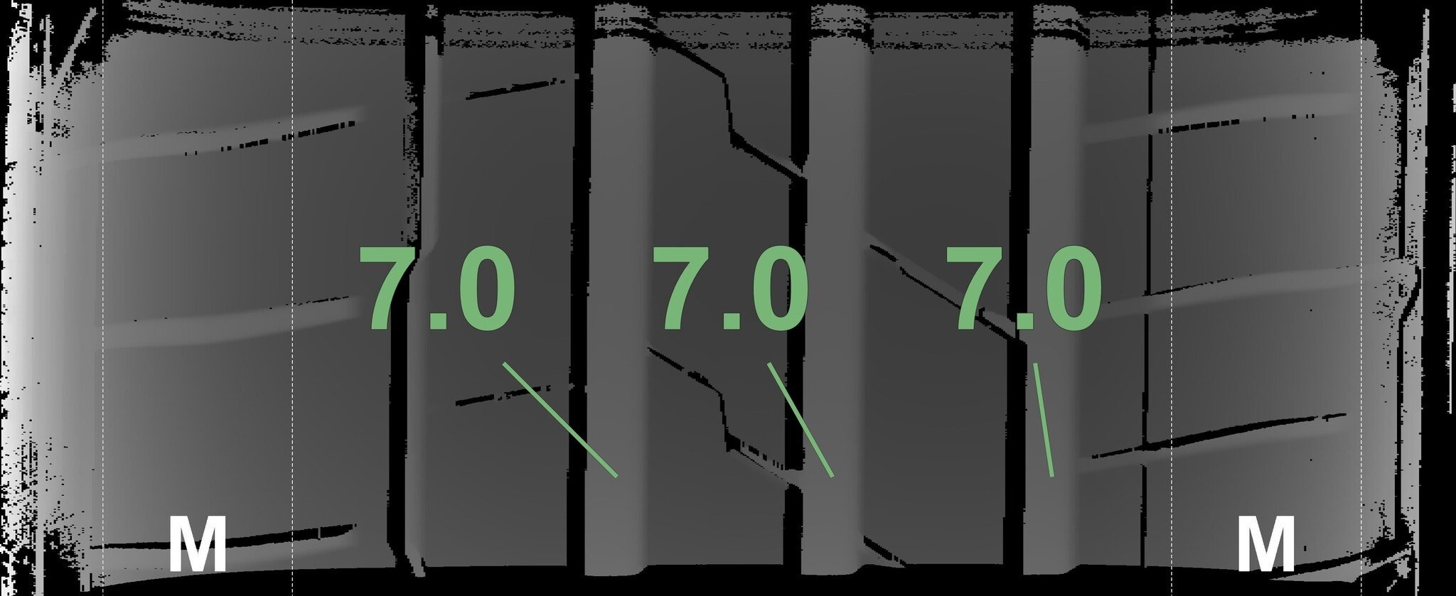 | Conditie | Profieldiepte | DOT | Rechts Achter | Demo nopjes nog zichtbaar | 7.0 mm | 4120 |