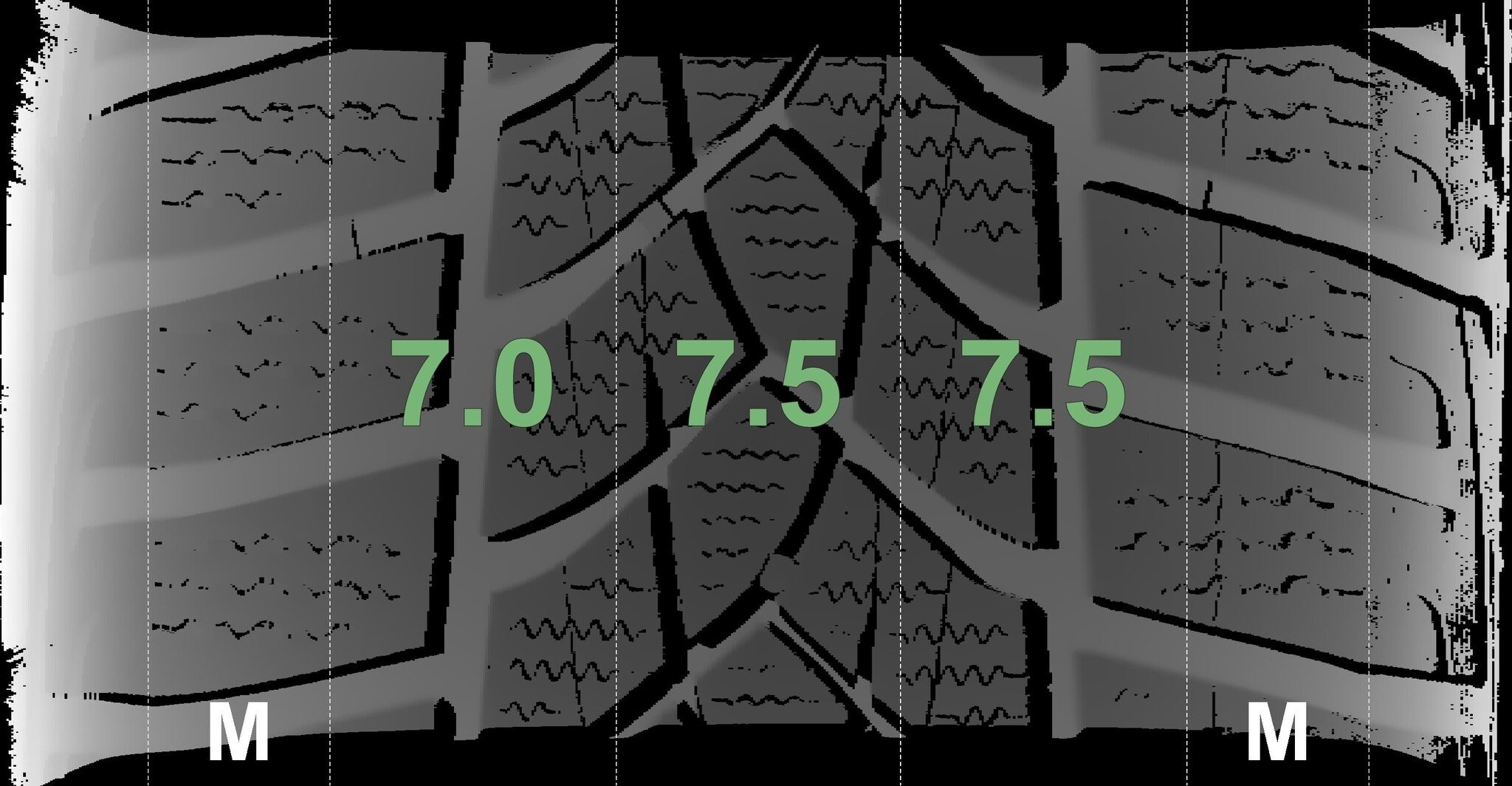 De gemeten profieldieptes en de details van de velgen zijn hierboven weergegeven.
