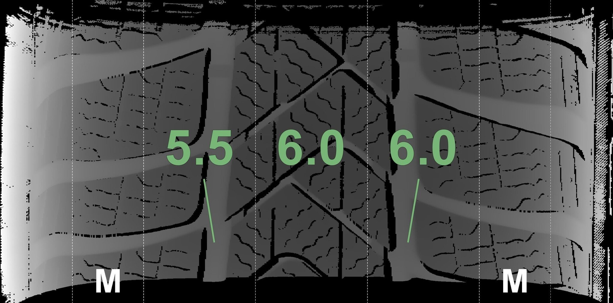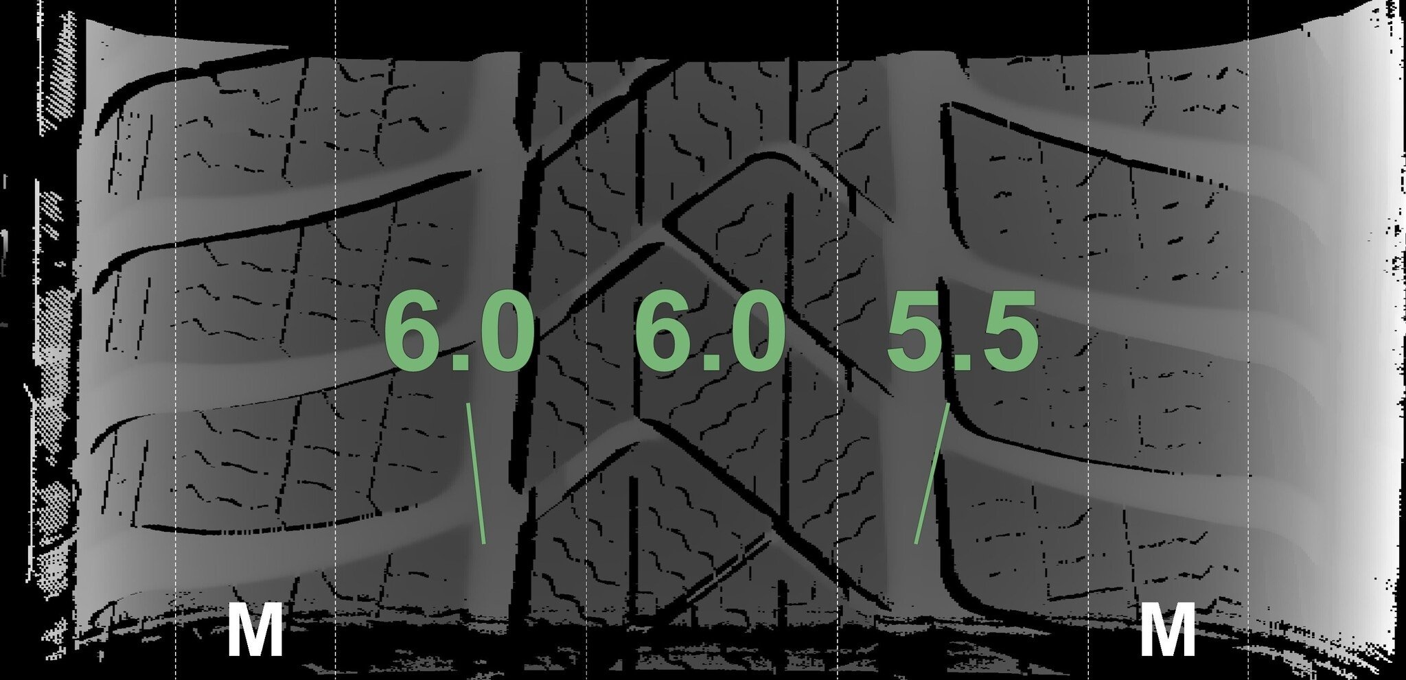 | Conditie | Profieldiepte | DOT | Links Voor | Gebruikt | 6.0 mm | 4919 |