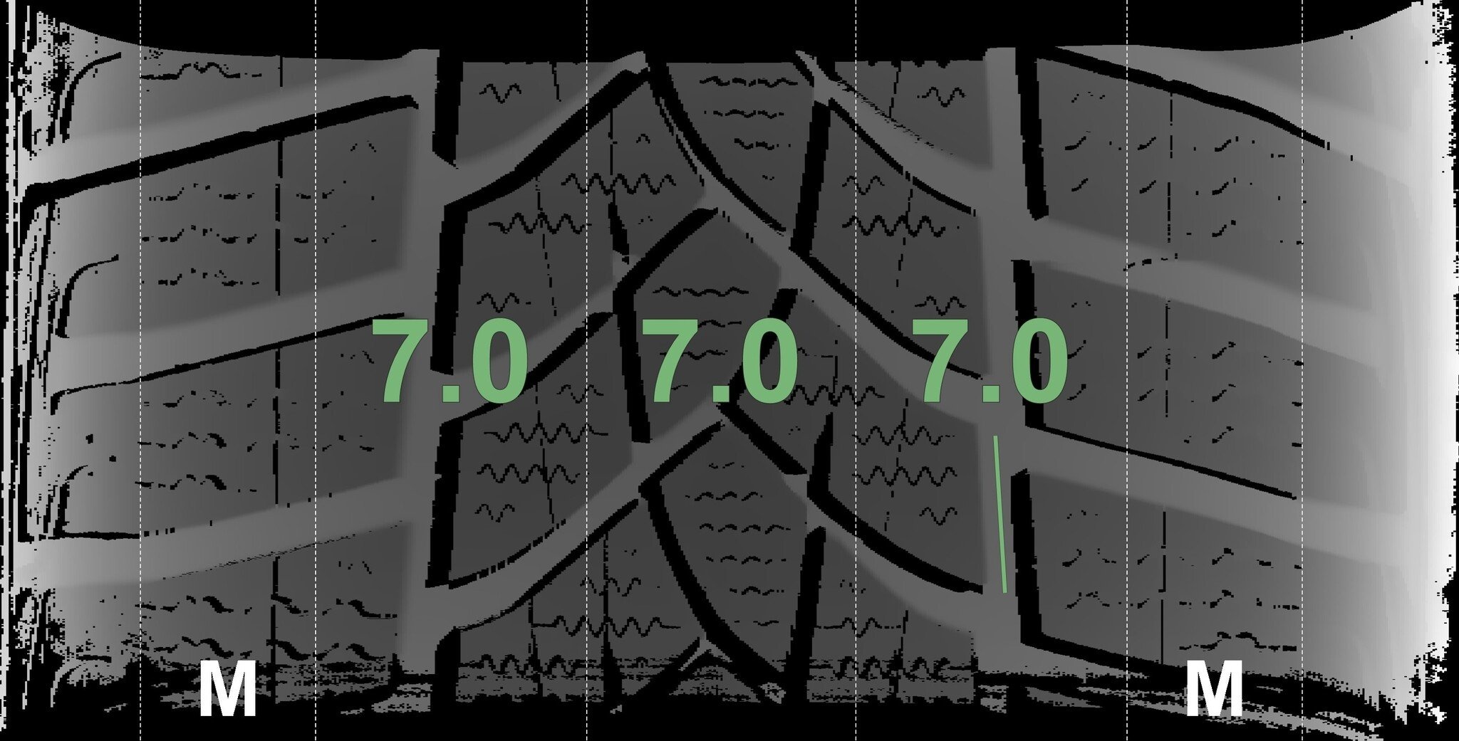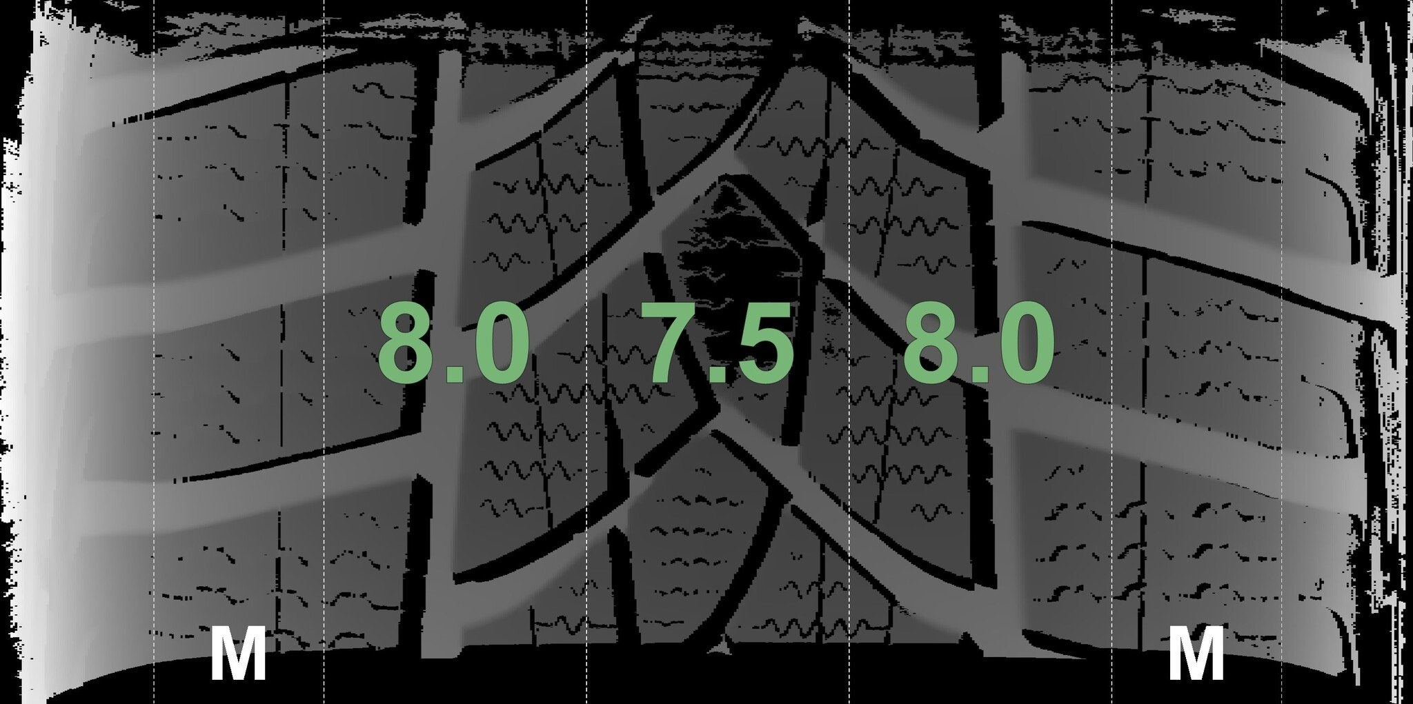 De gemeten profieldieptes en de details van de velgen zijn hierboven weergegeven.