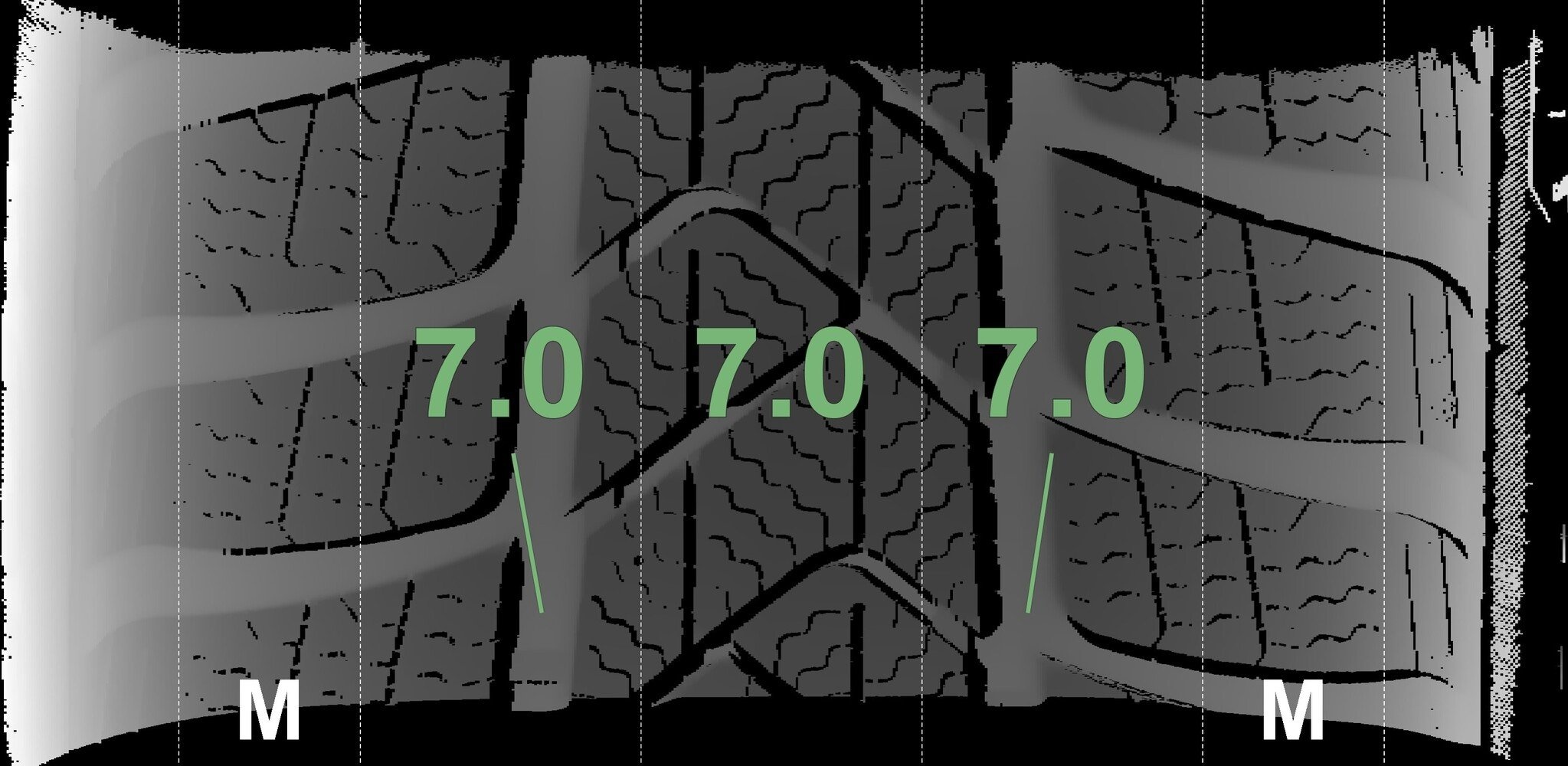 De gemeten profieldieptes en de details van de velgen zijn hierboven weergegeven.