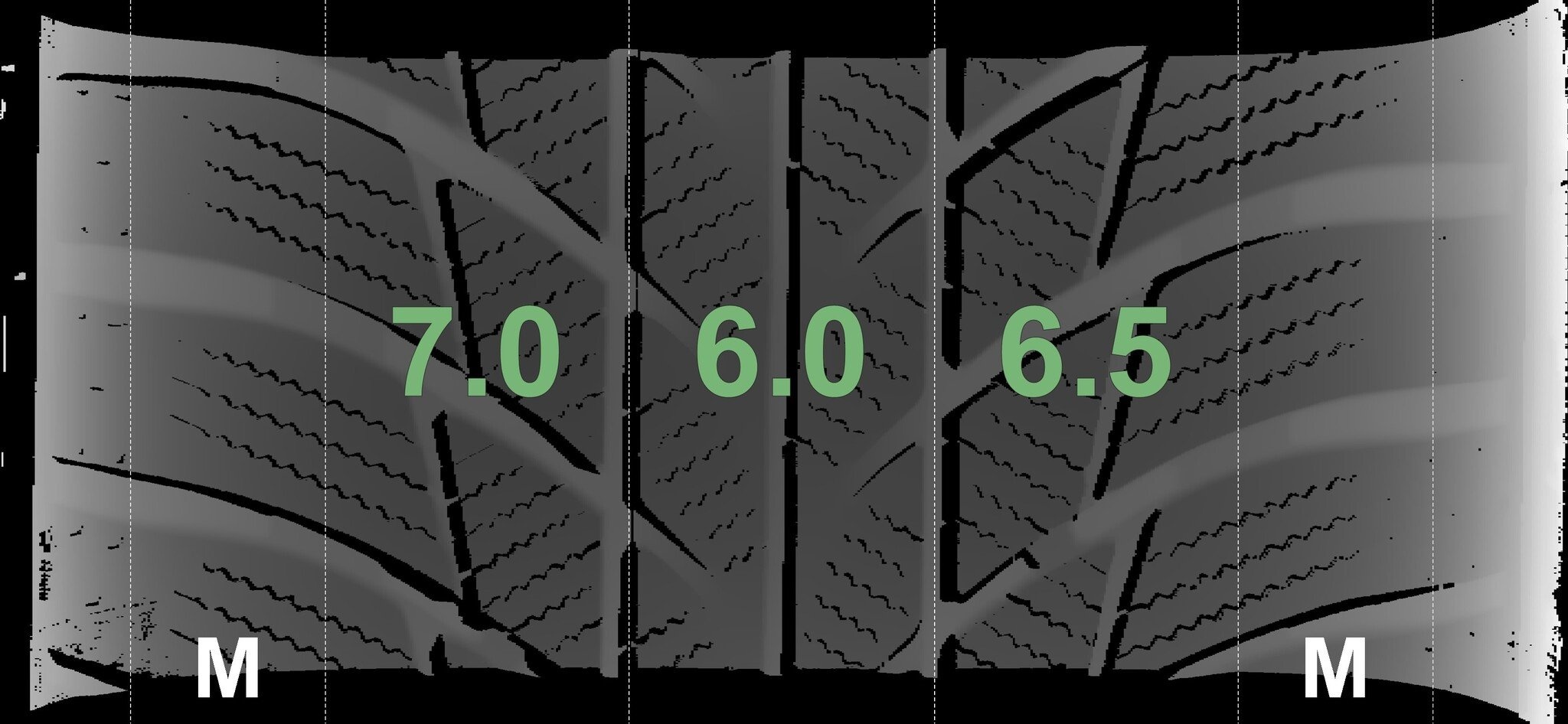 De gemeten profieldieptes en de details van de velgen zijn hierboven weergegeven.