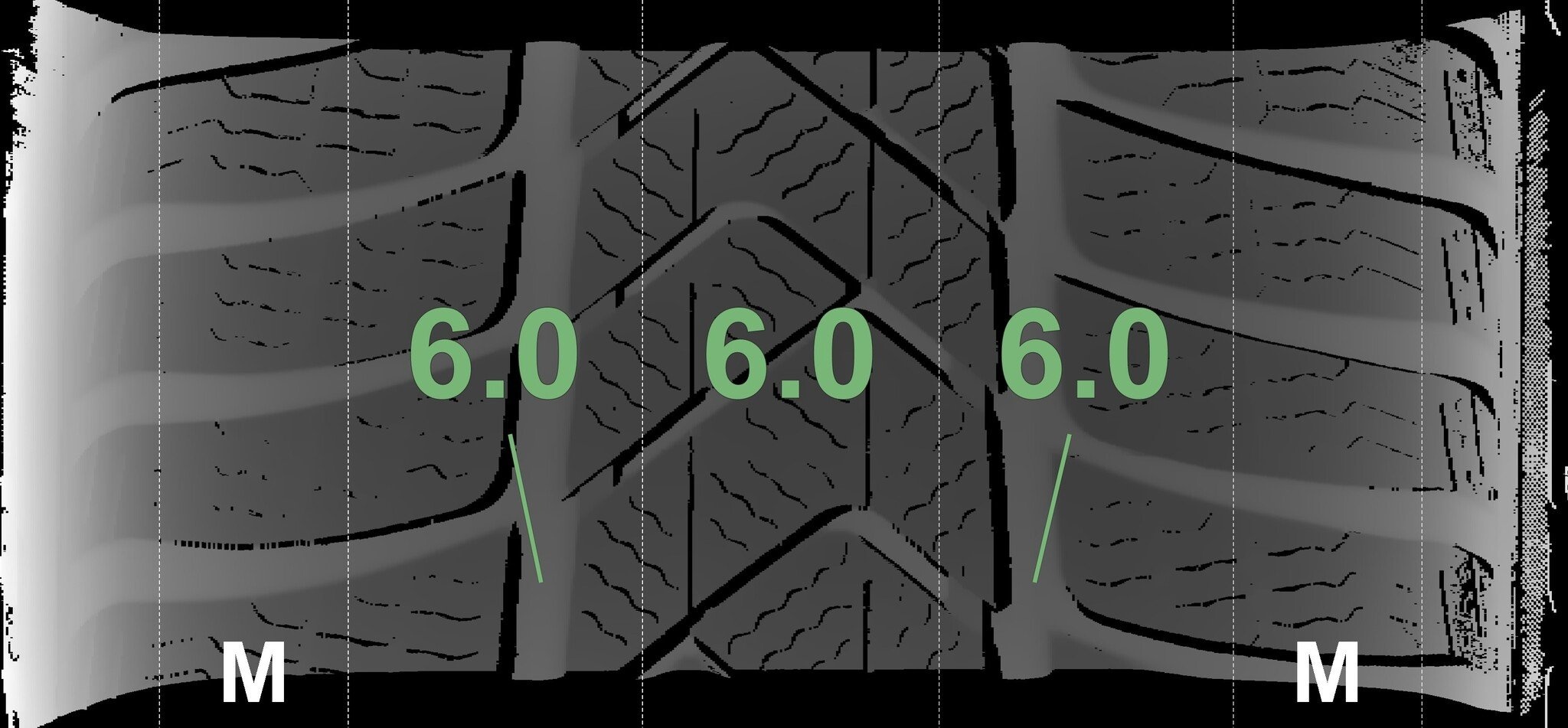 De gemeten profieldieptes en de details van de velgen zijn hierboven weergegeven.