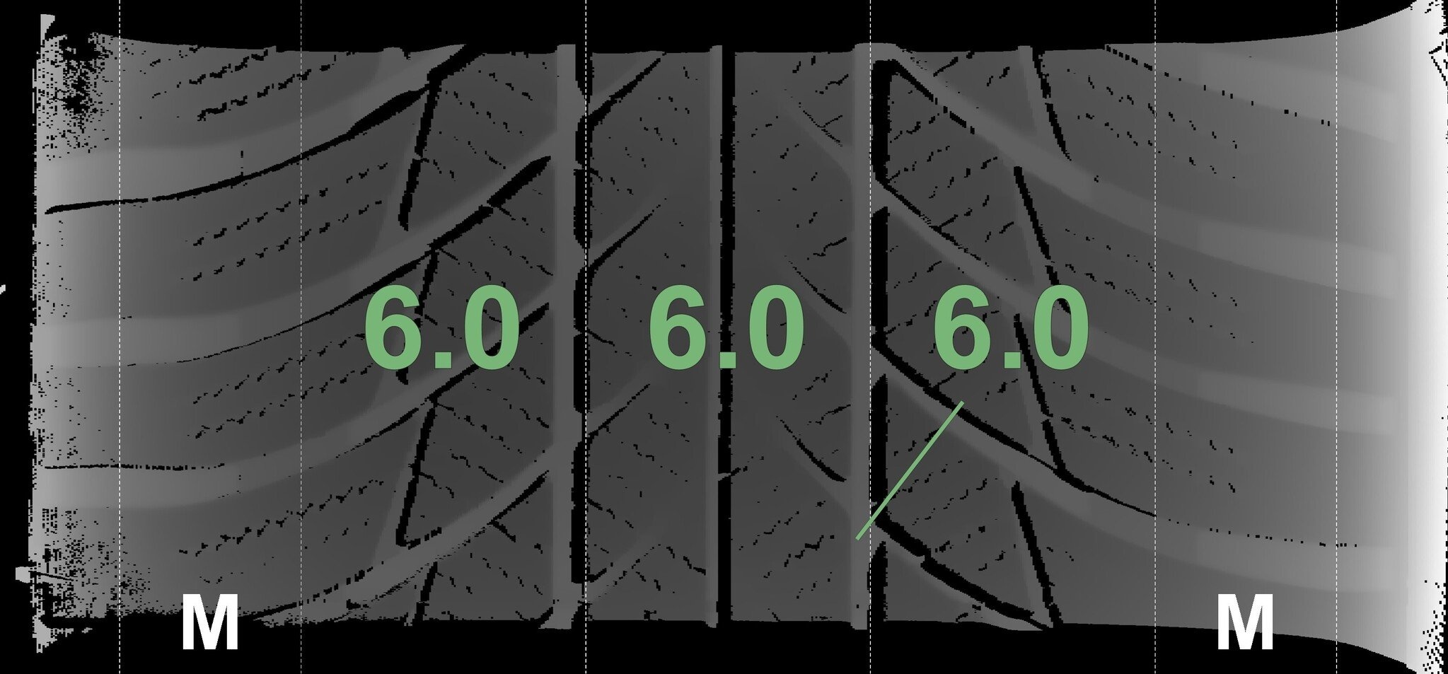 De gemeten profieldieptes en de details van de velgen zijn hierboven weergegeven.