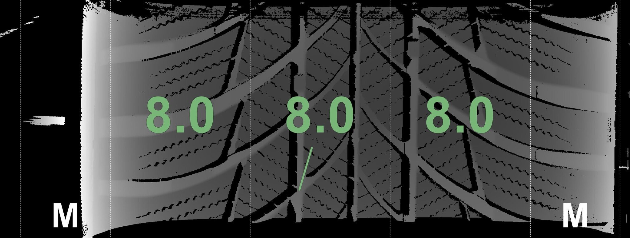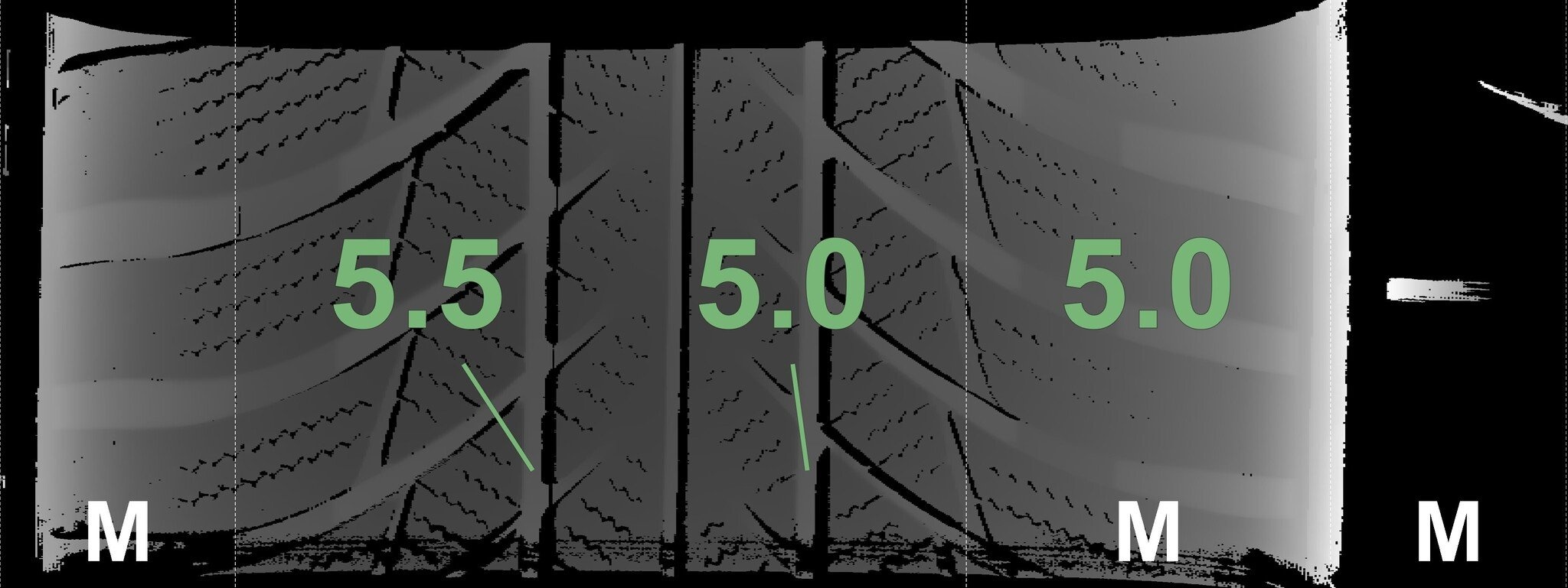 De gemeten profieldieptes en de details van de velgen zijn hierboven weergegeven.