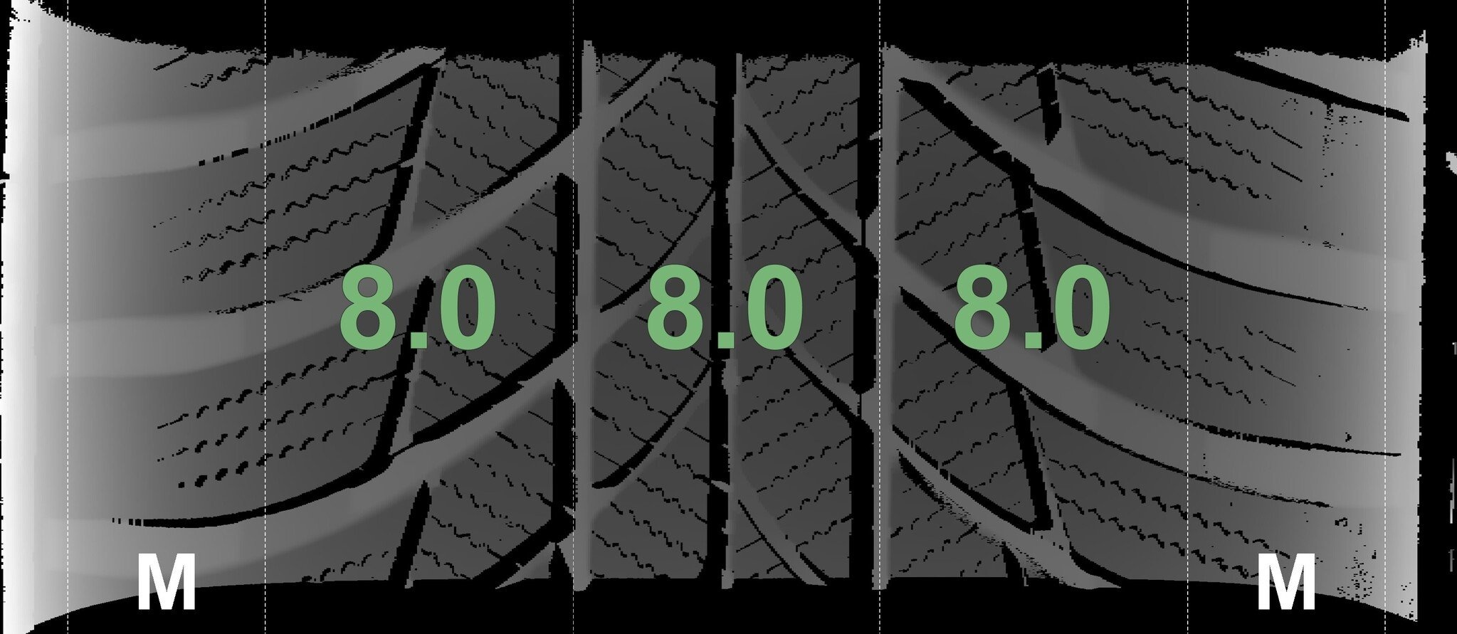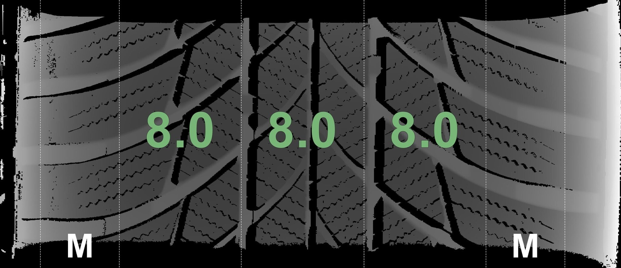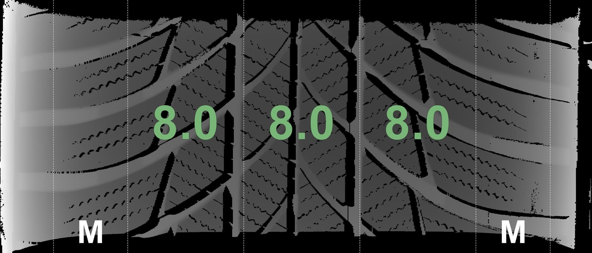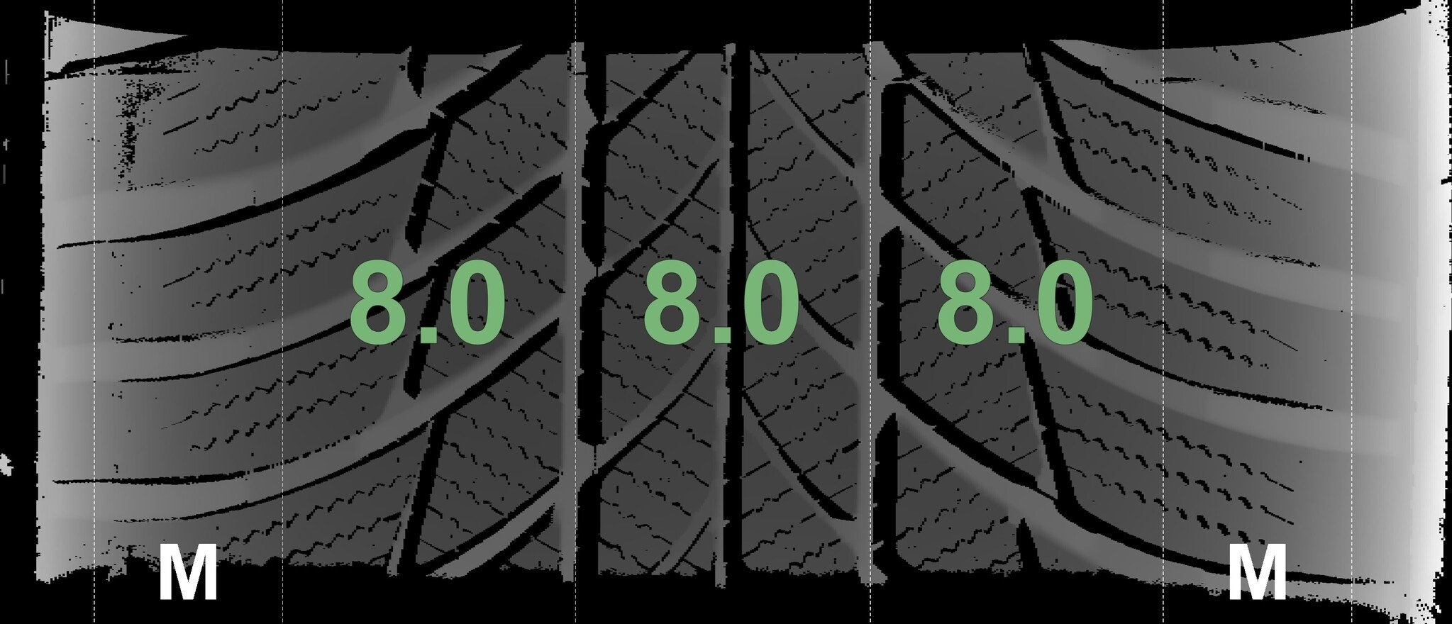De gemeten profieldieptes en de details van de velgen zijn hierboven weergegeven.