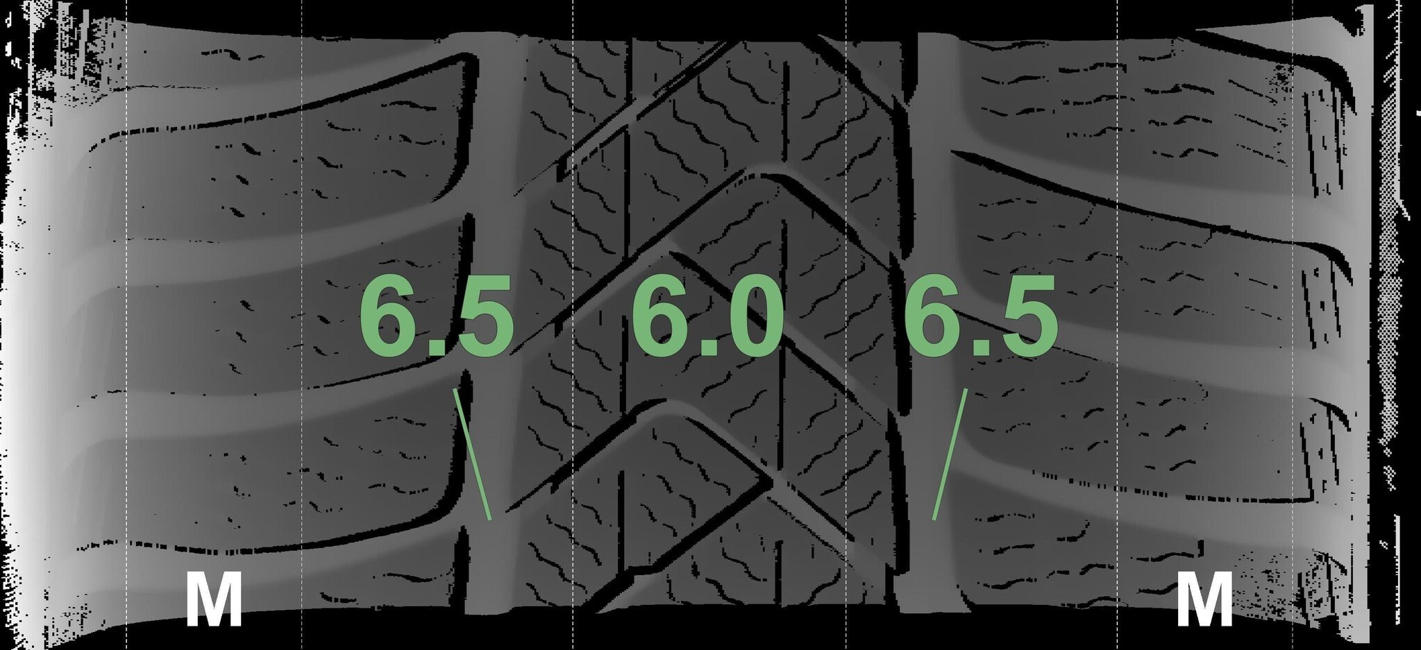 De gemeten profieldieptes en de details van de velgen zijn hierboven weergegeven.