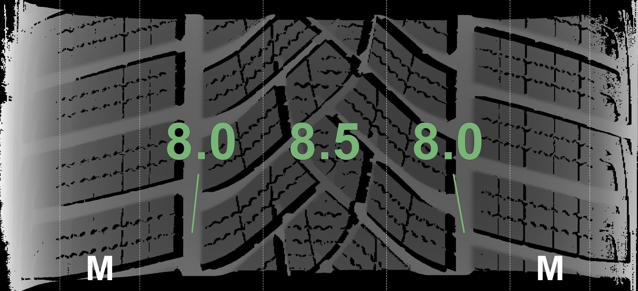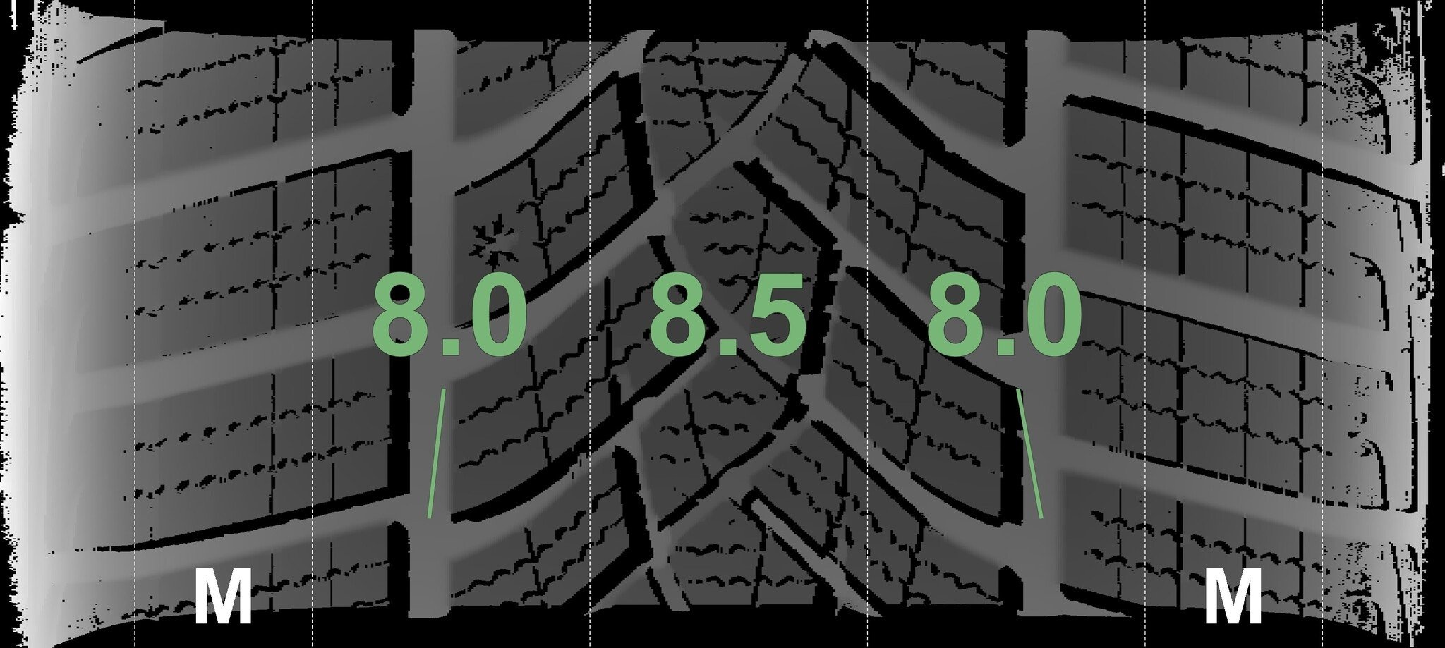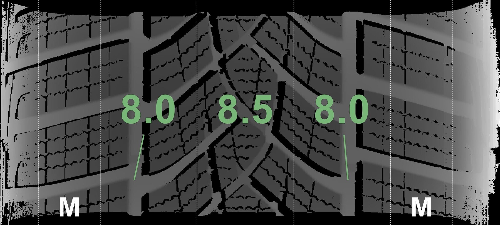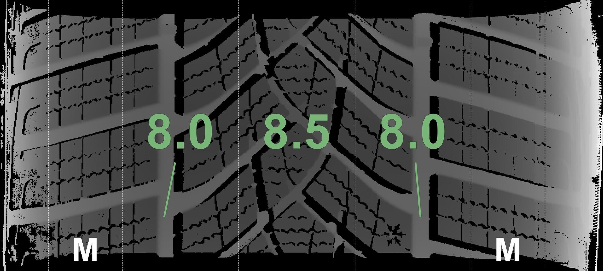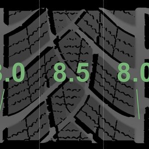 De gemeten profieldieptes en de details van de velgen zijn hierboven weergegeven.