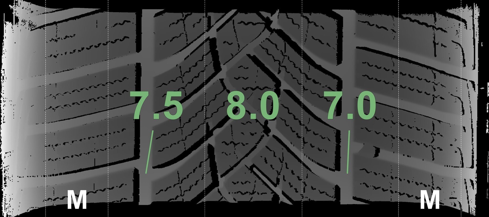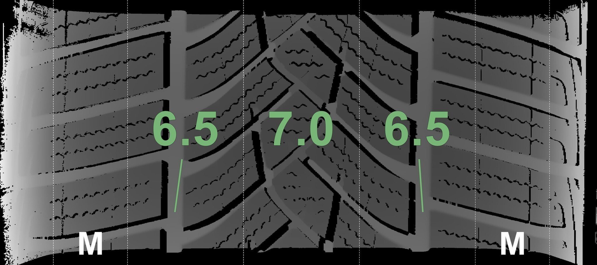 De gemeten profieldieptes en de details van de velgen zijn hierboven weergegeven.