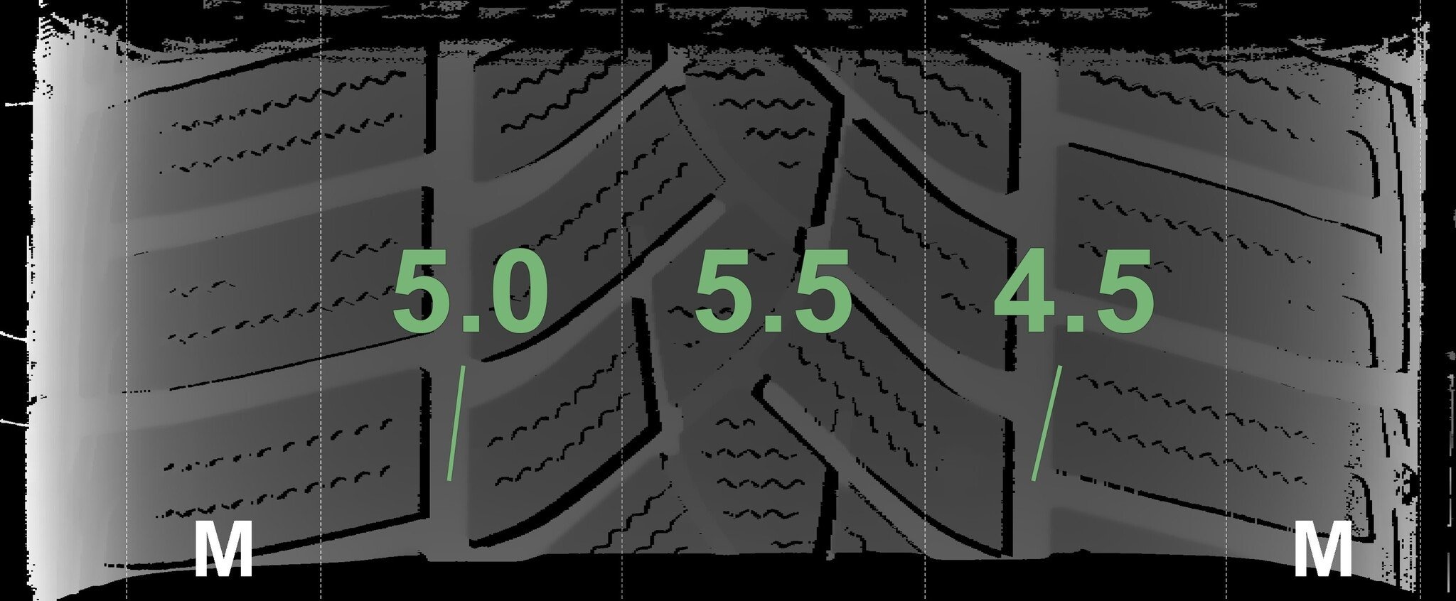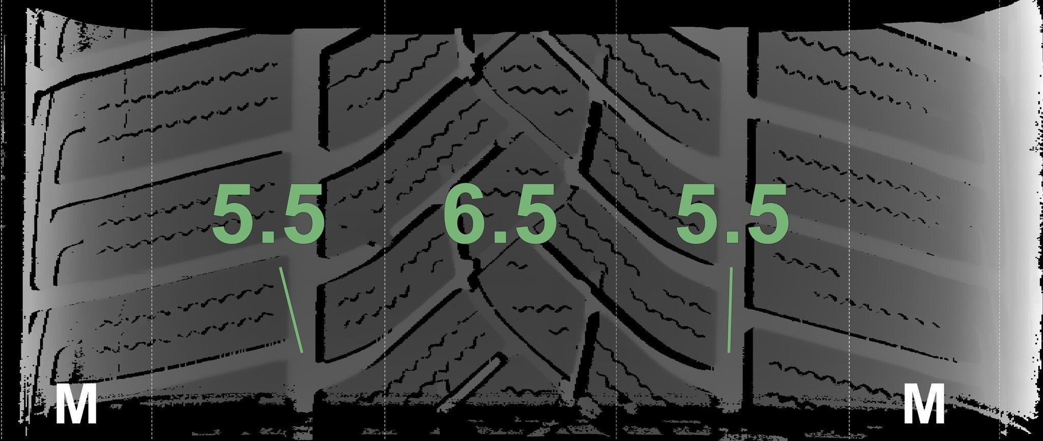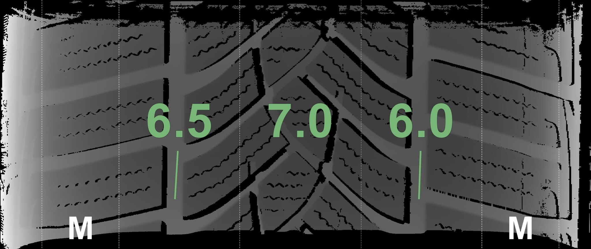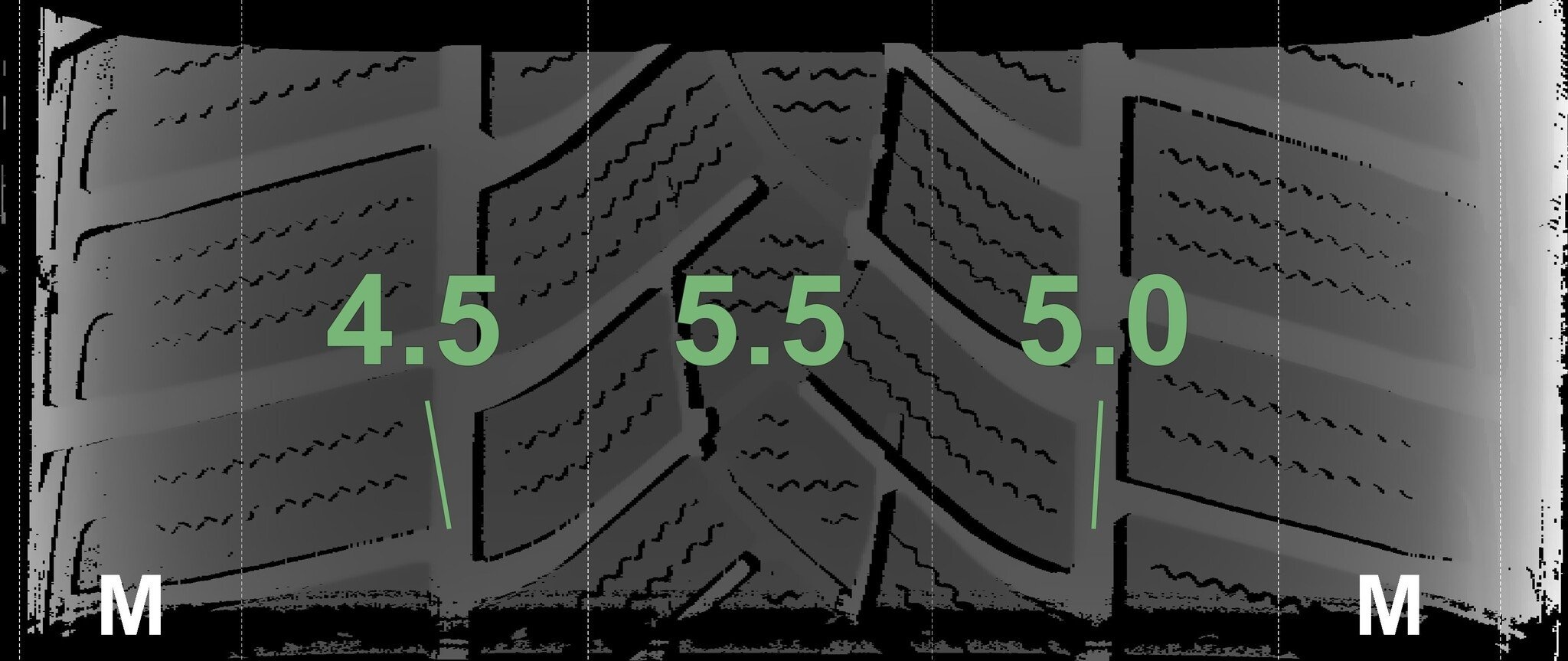 De gemeten profieldieptes en de details van de velgen zijn hierboven weergegeven.
