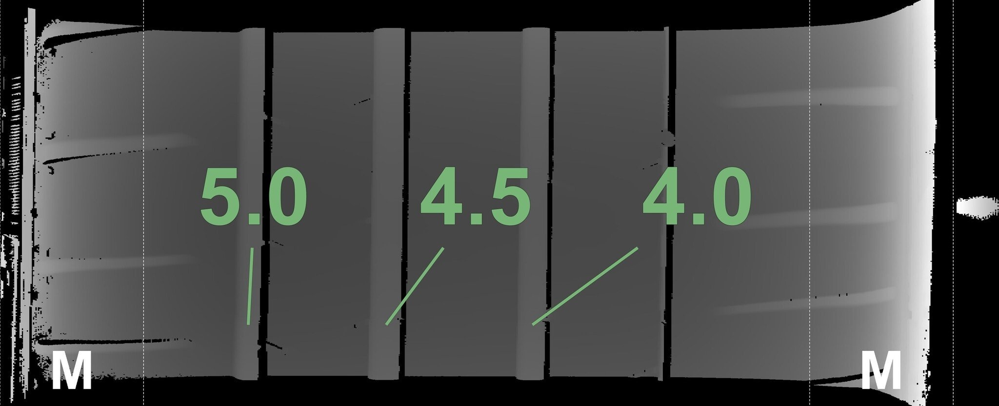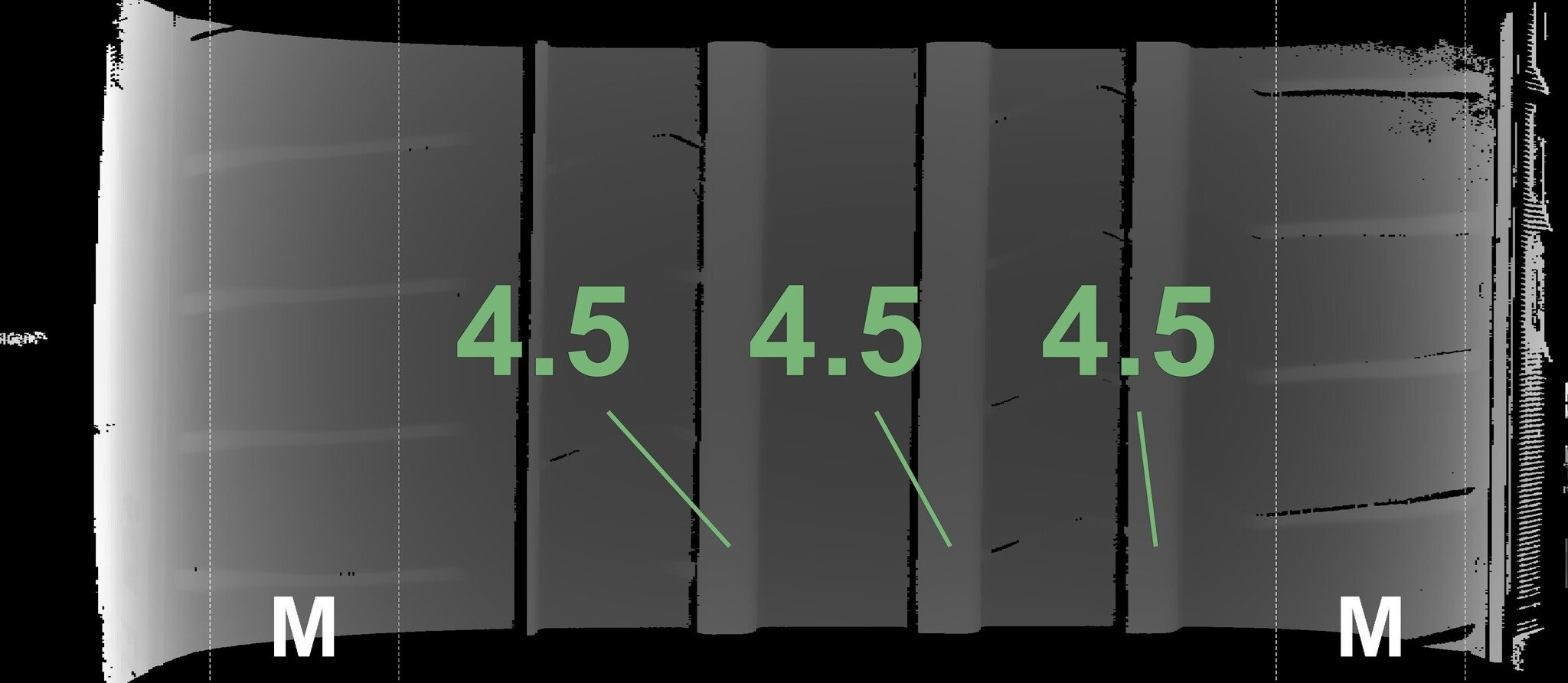 De gemeten profieldieptes en de details van de velgen zijn hierboven weergegeven.