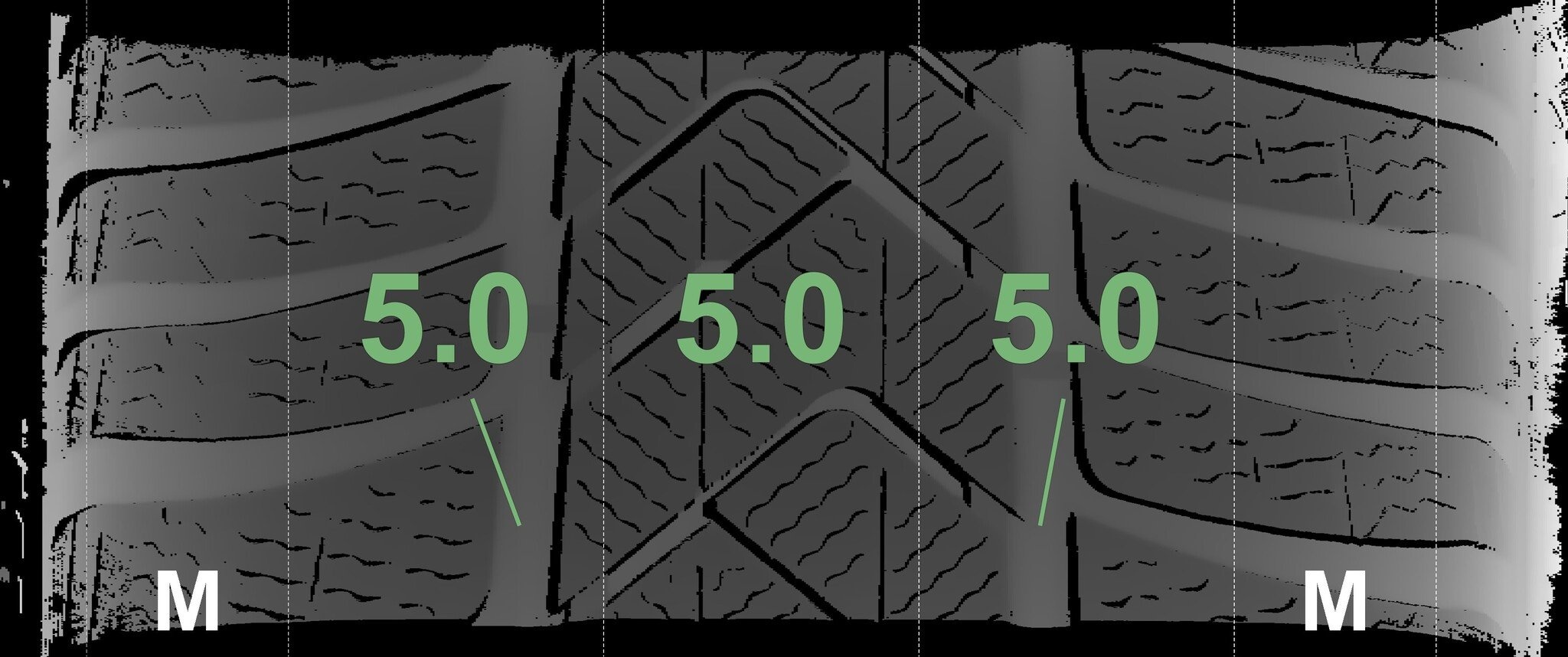 De gemeten profieldieptes en de details van de velgen zijn hierboven weergegeven.