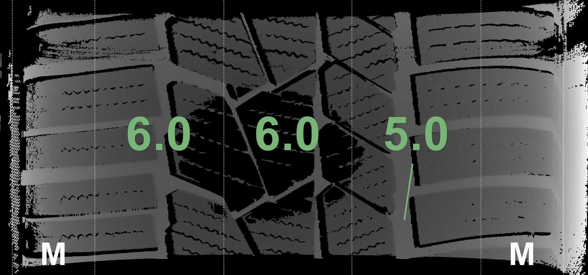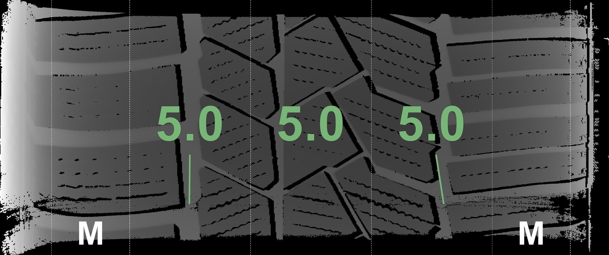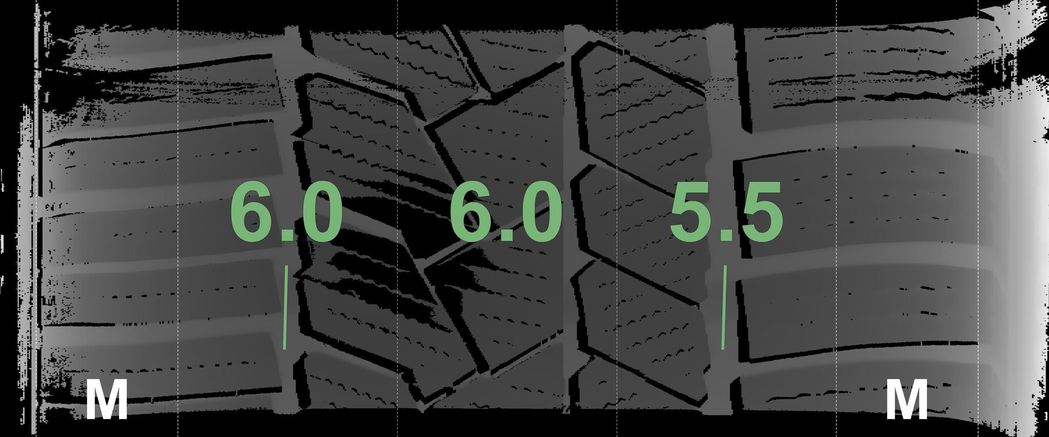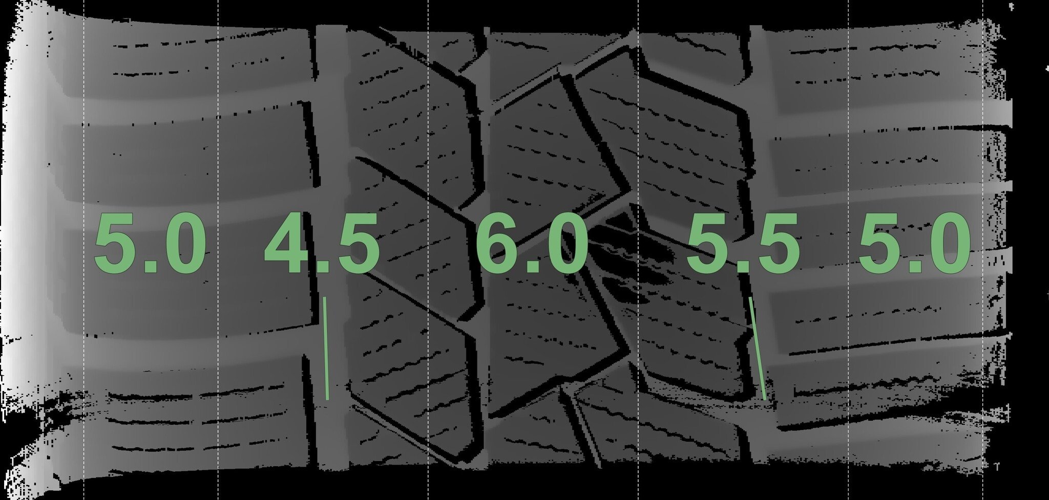 De gemeten profieldieptes en de details van de velgen zijn hierboven weergegeven.