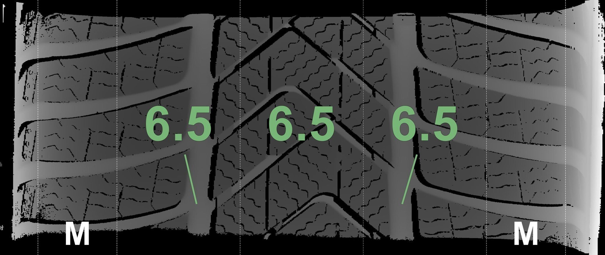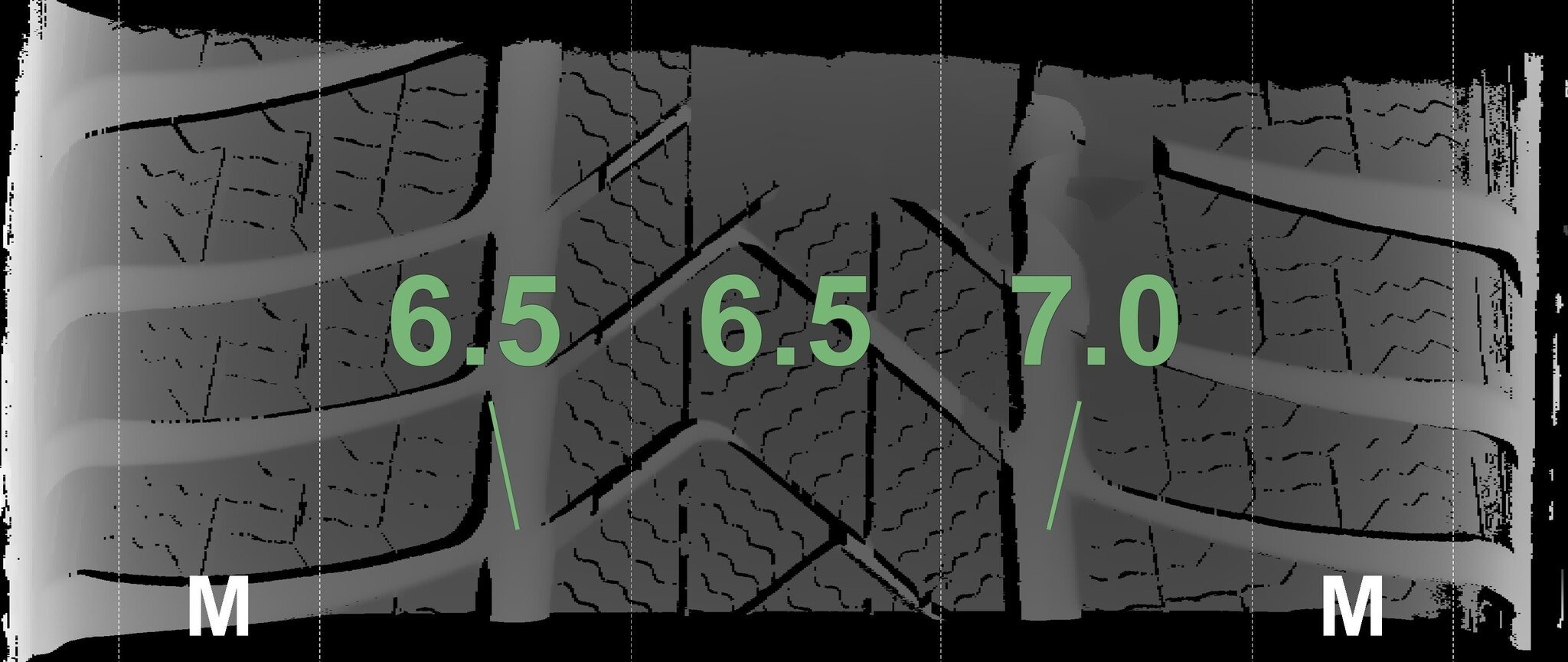 De gemeten profieldieptes en de details van de velgen zijn hierboven weergegeven.
