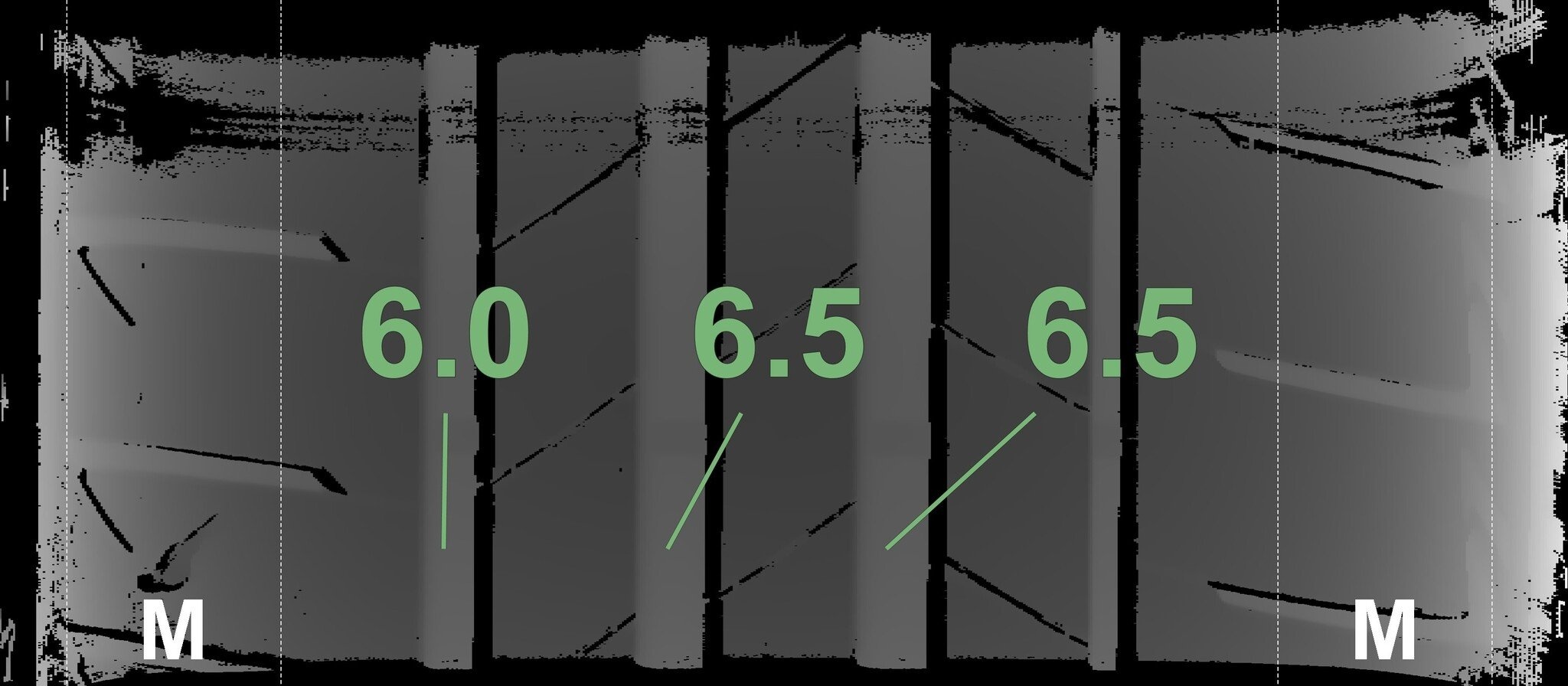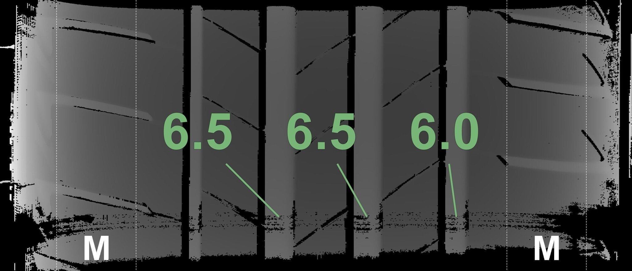 Conditie | Profieldiepte | DOT | Links Achter | Demo nopjes nog zichtbaar | 6.5 mm | 2422 |