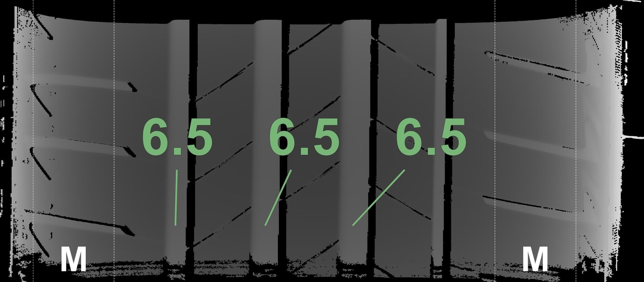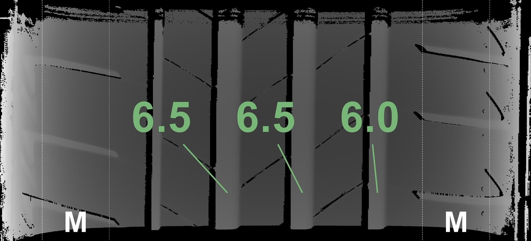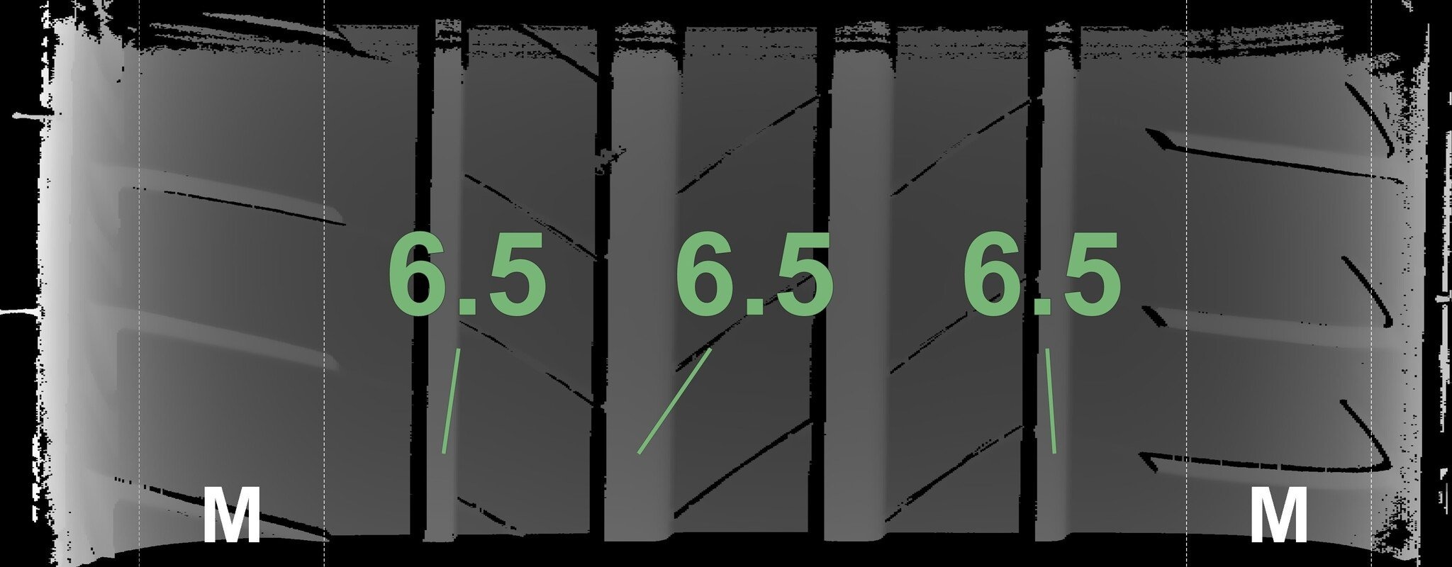 | Conditie | Profieldiepte | DOT | Rechts Achter | Demo nopjes nog zichtbaar | 6.5 mm | 2723 |